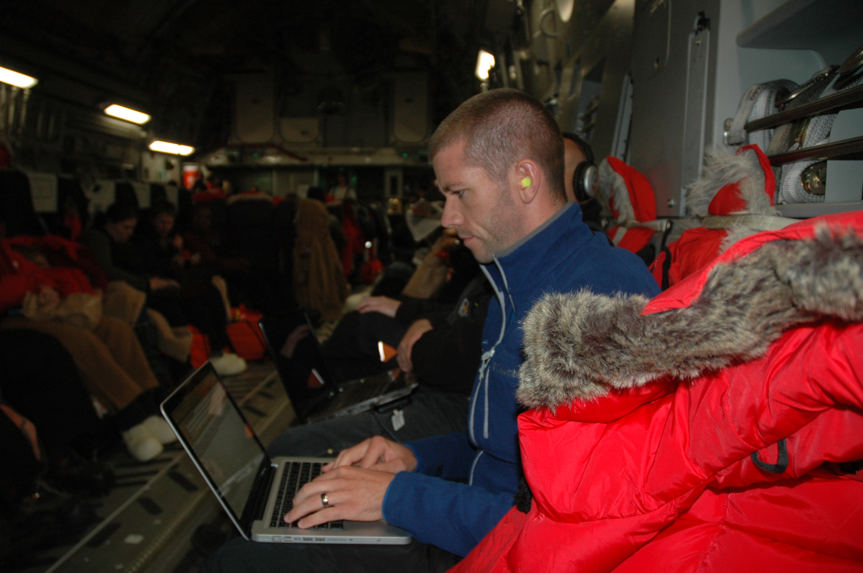 Michael League: "Some days, this is your office." Aboard the C-17.