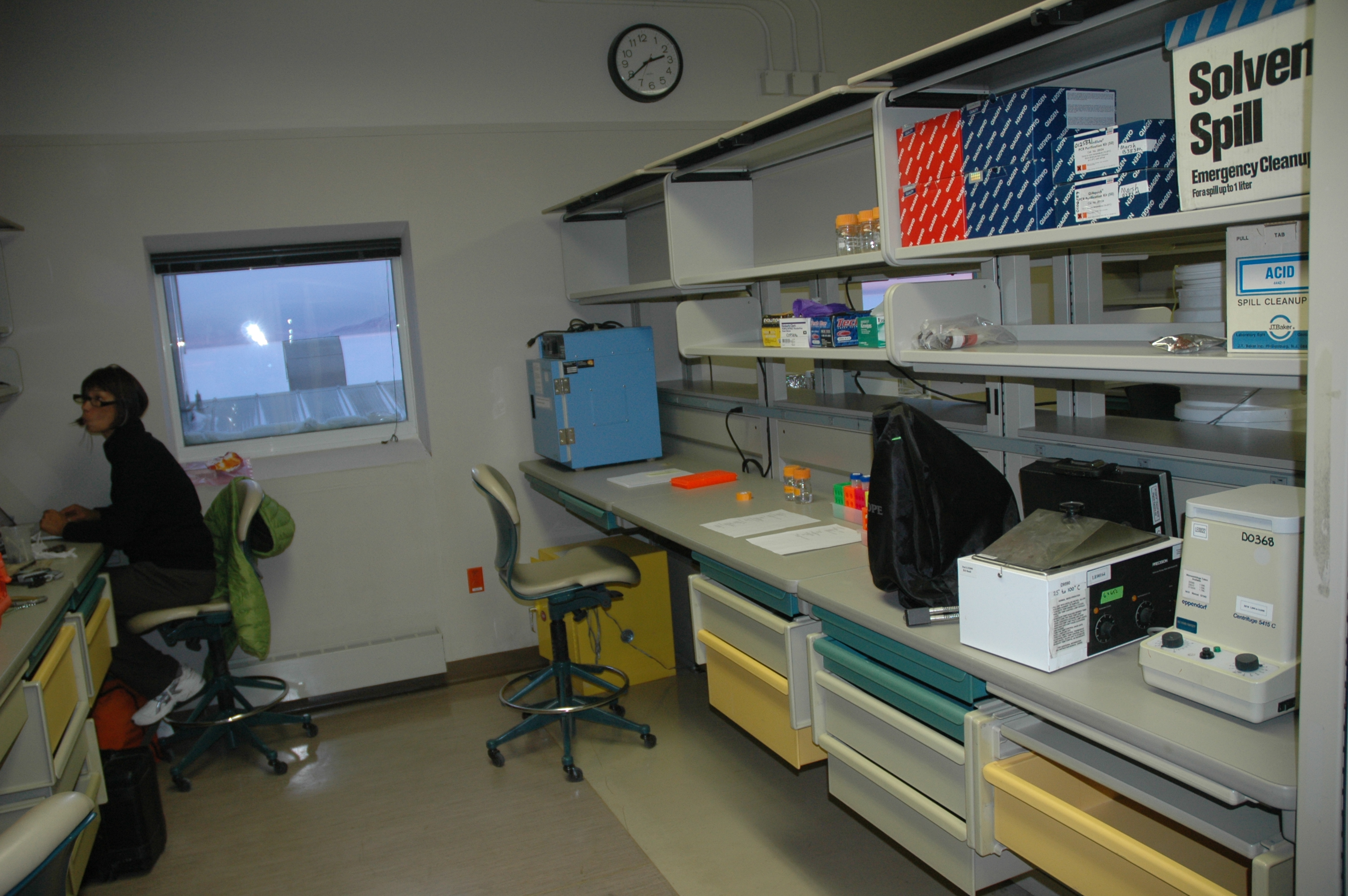 The team sets up their lab space. McMurdo Station, Antarctica.