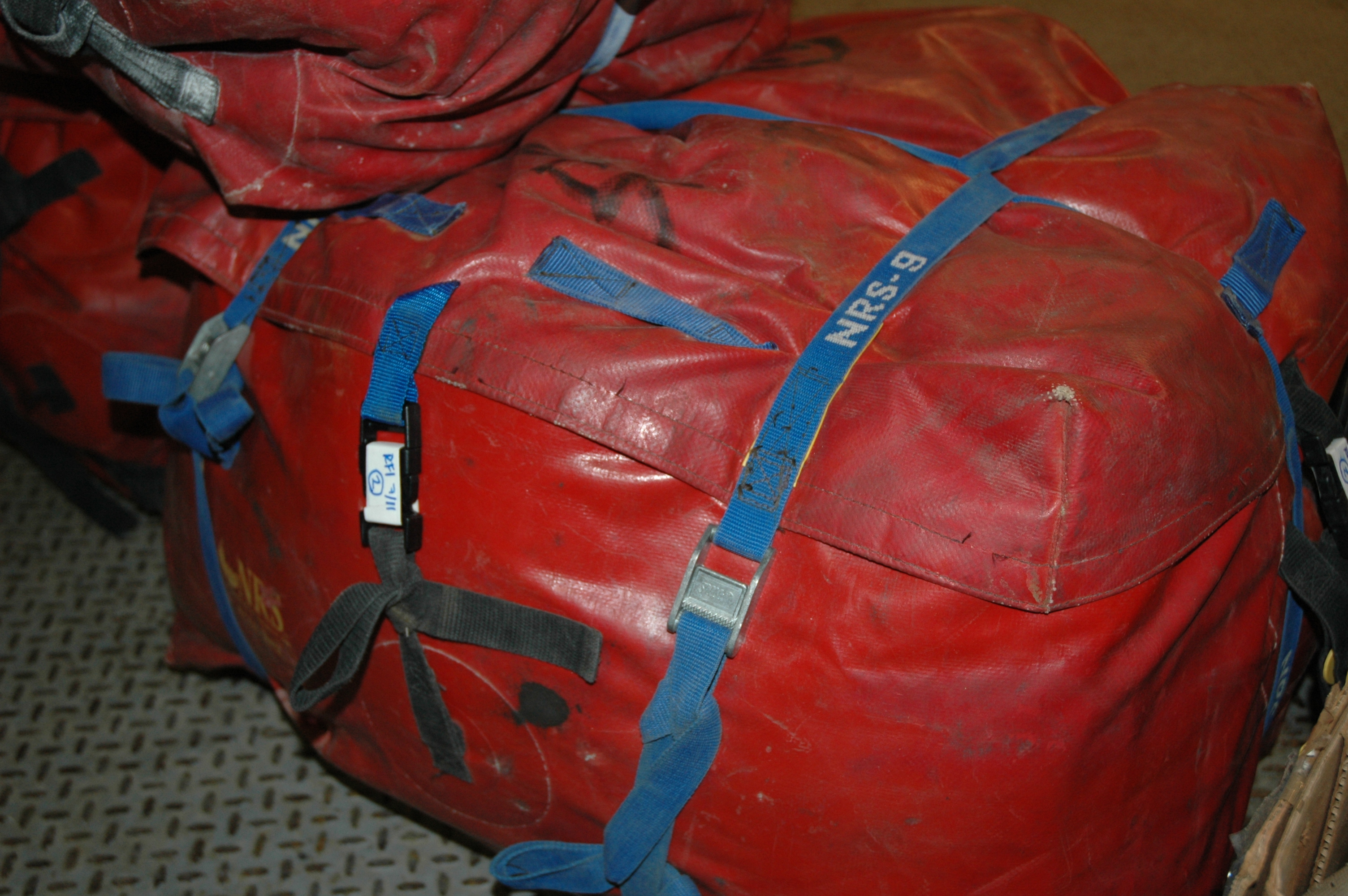 The team carries three survival bags, each weighing about 70 pounds. McMurdo Station, Antarctica.