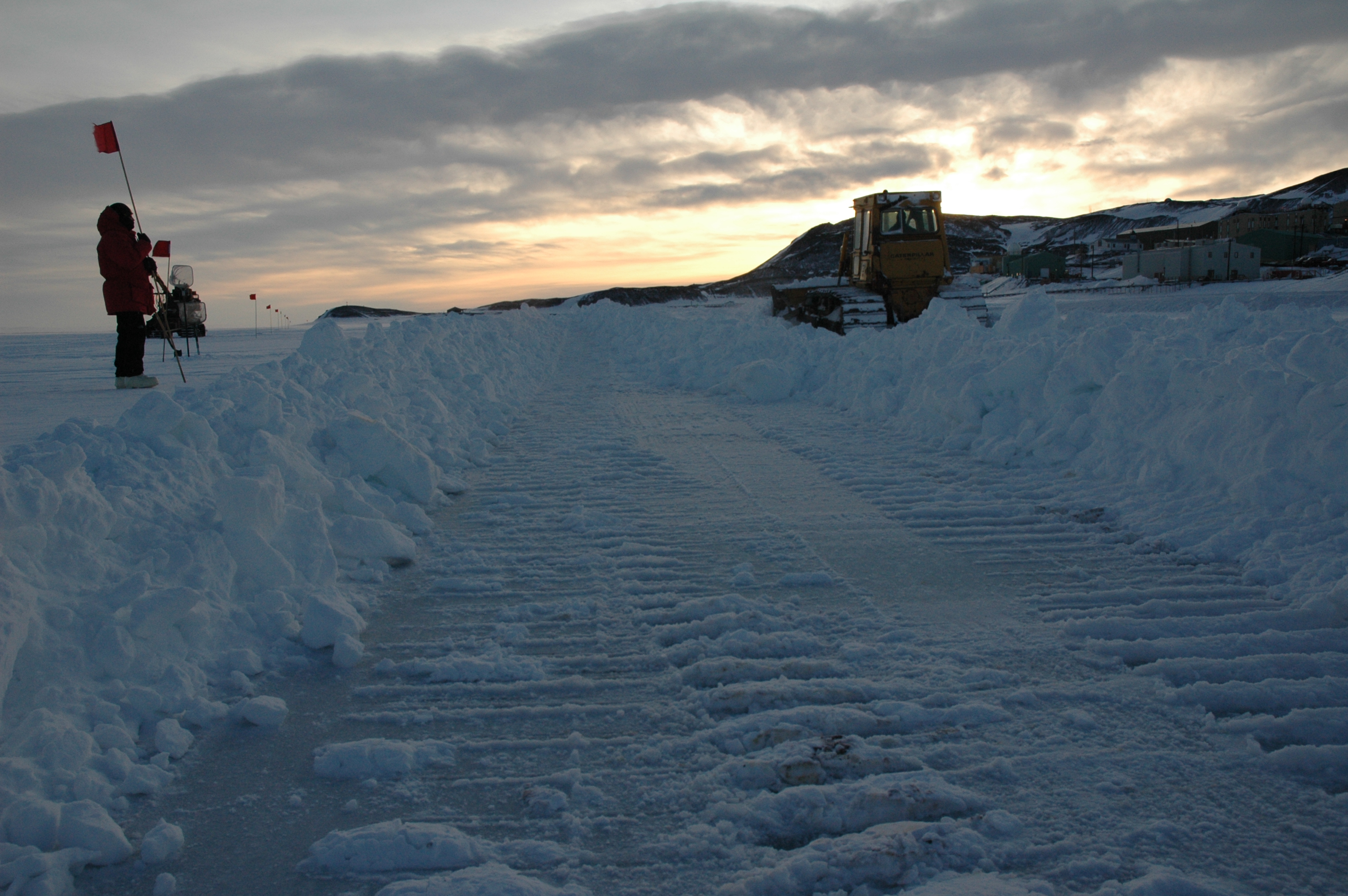 The team clears about two feet of snow off this particular spot. McMurdo Station, Antarctica.