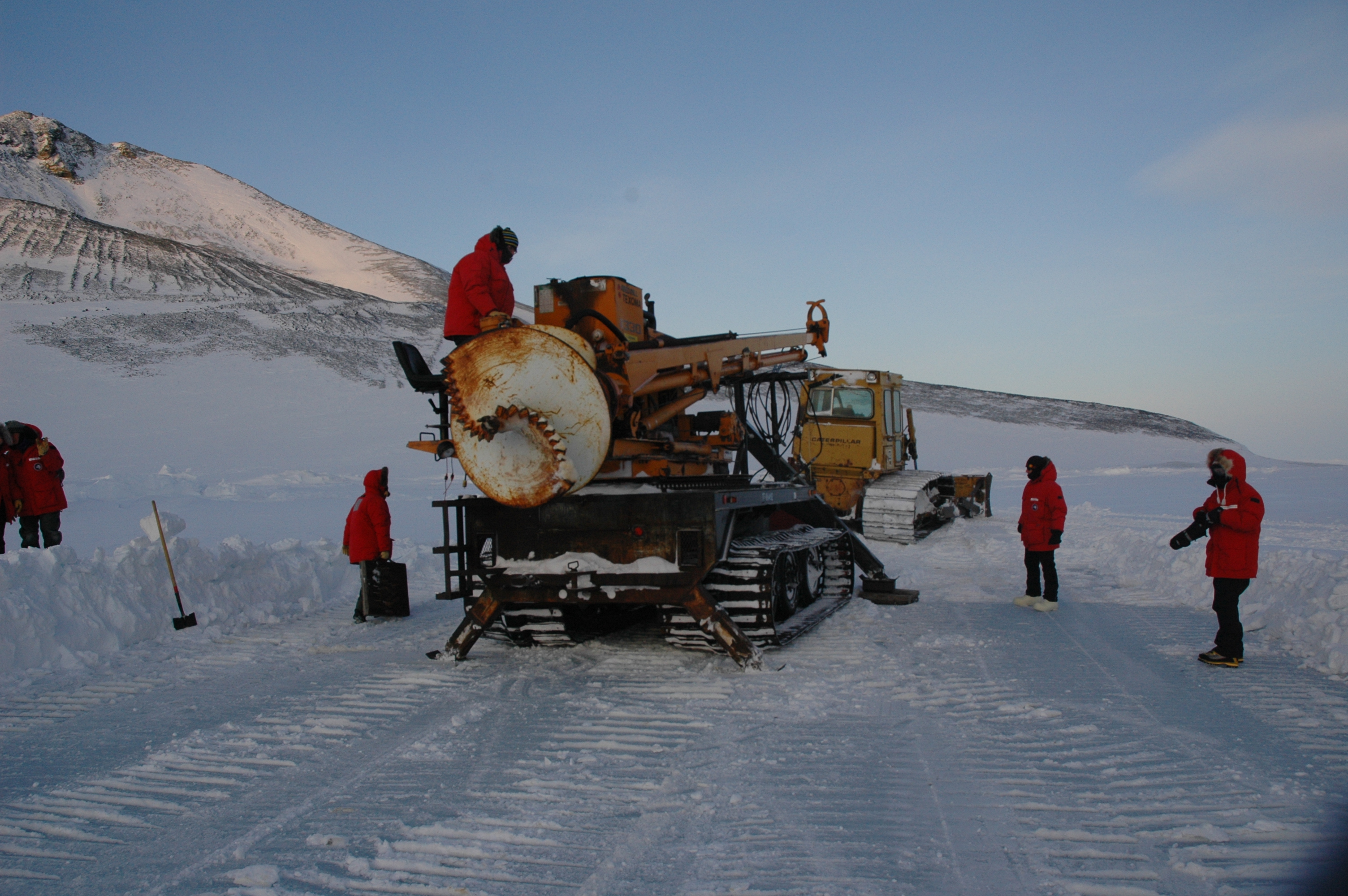 This large ice drill broke twice while the team tried to make a dive hole. McMurdo Station, Antarctica.