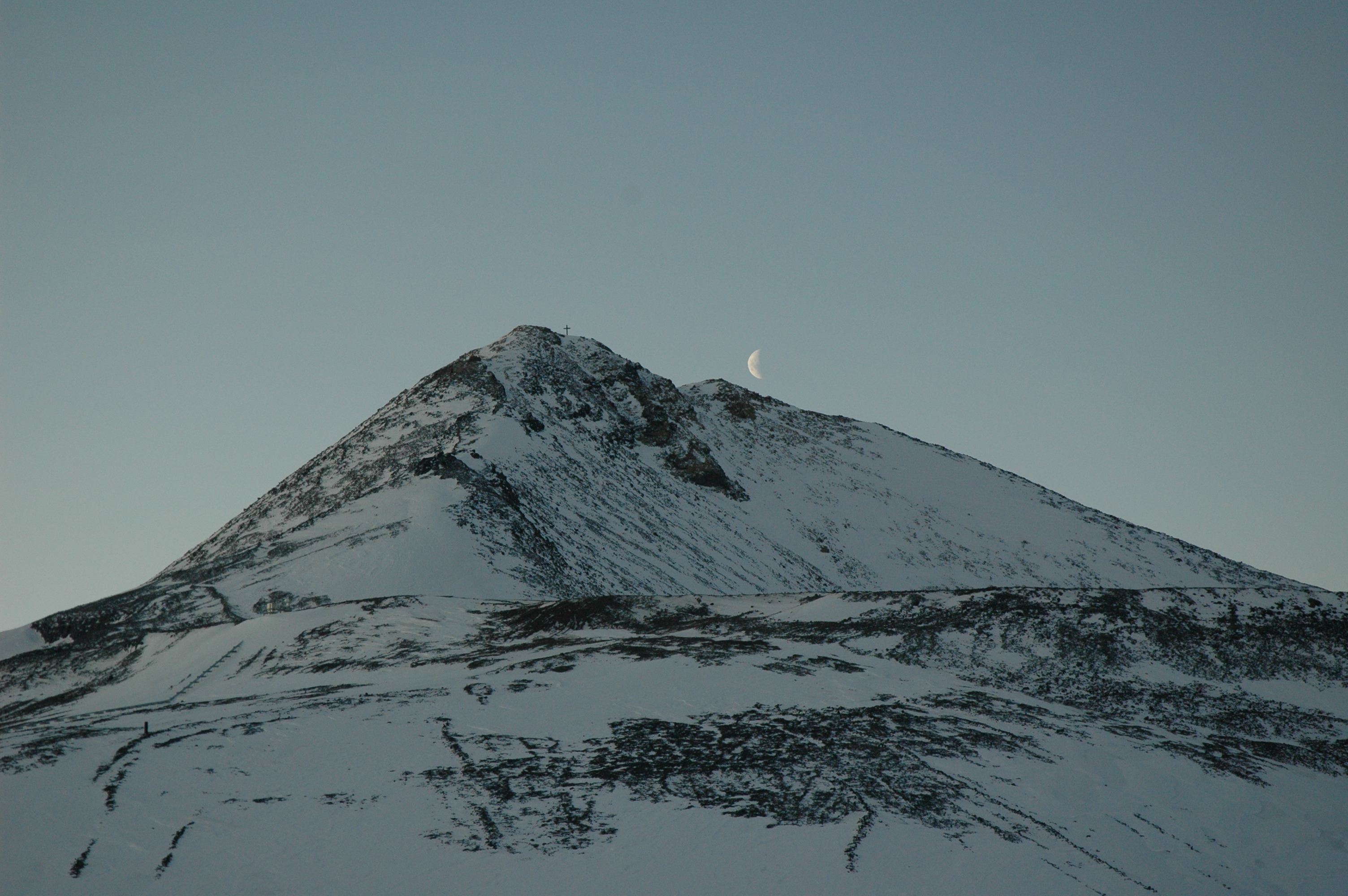 The moon over Observation Hill. McMurdo Station, Antarctica.