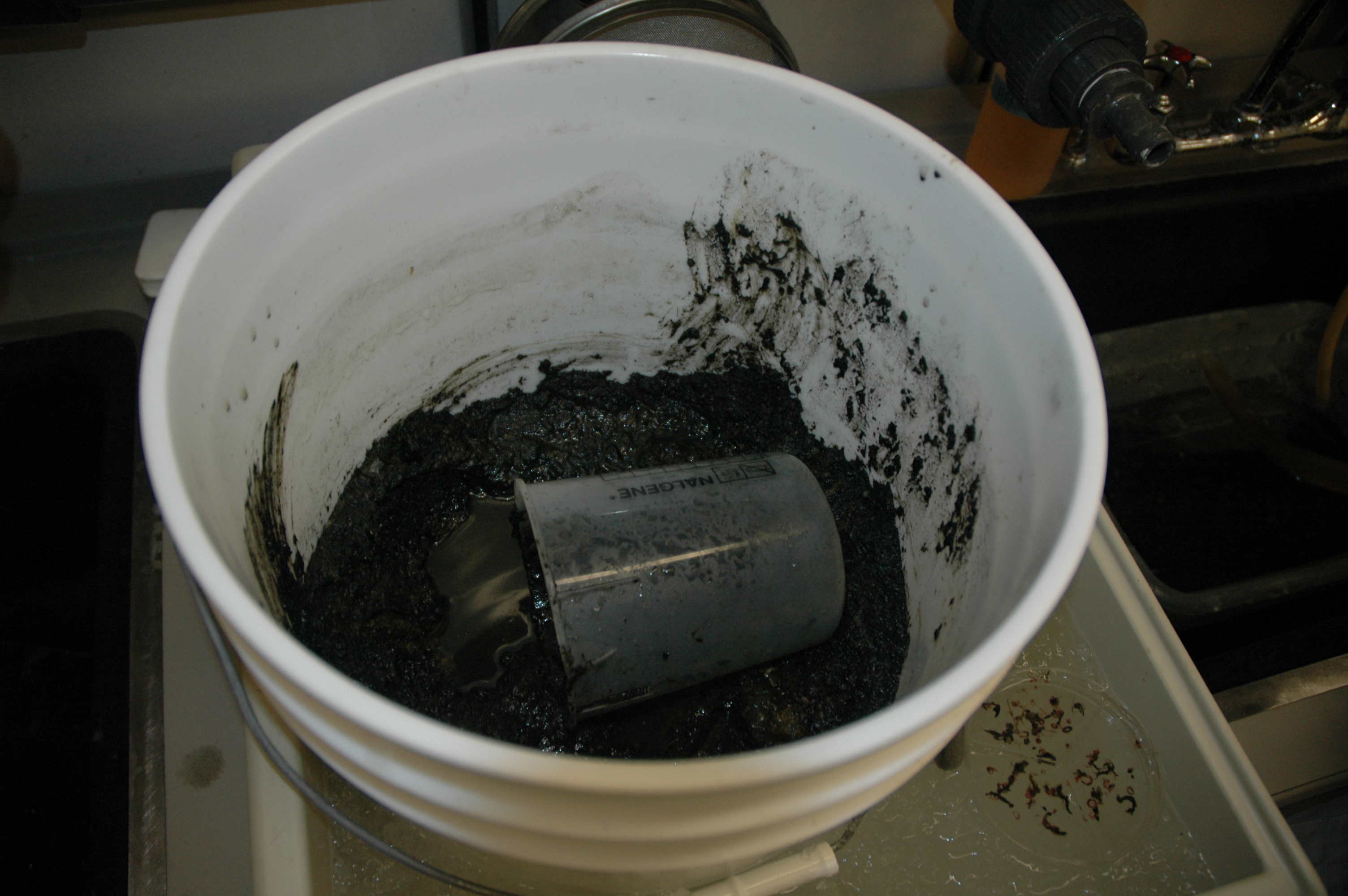This is the sediment that Dr. Adam Marsh collected. To sort through it, you first need to scoop some out onto the sieve. McMurdo Station, Antarctica.