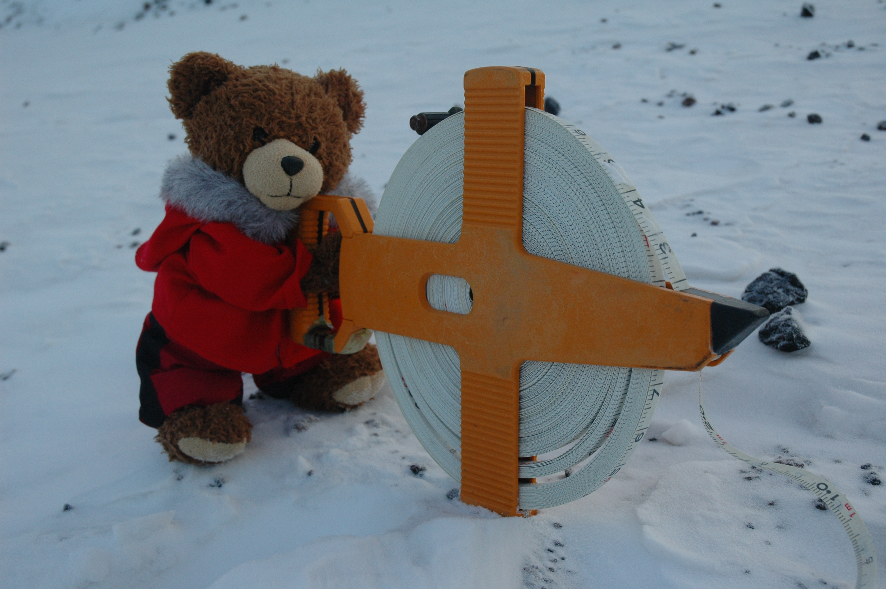 Theodore lowers the tape measure to the ocean bottom below. McMurdo Station, Antarctica.