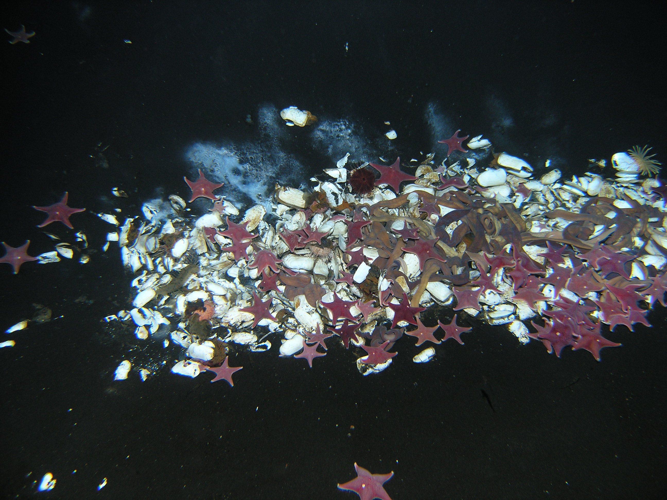 Sea stars and nemertean worms break down the dead organisms. McMurdo Station, Antarctica.