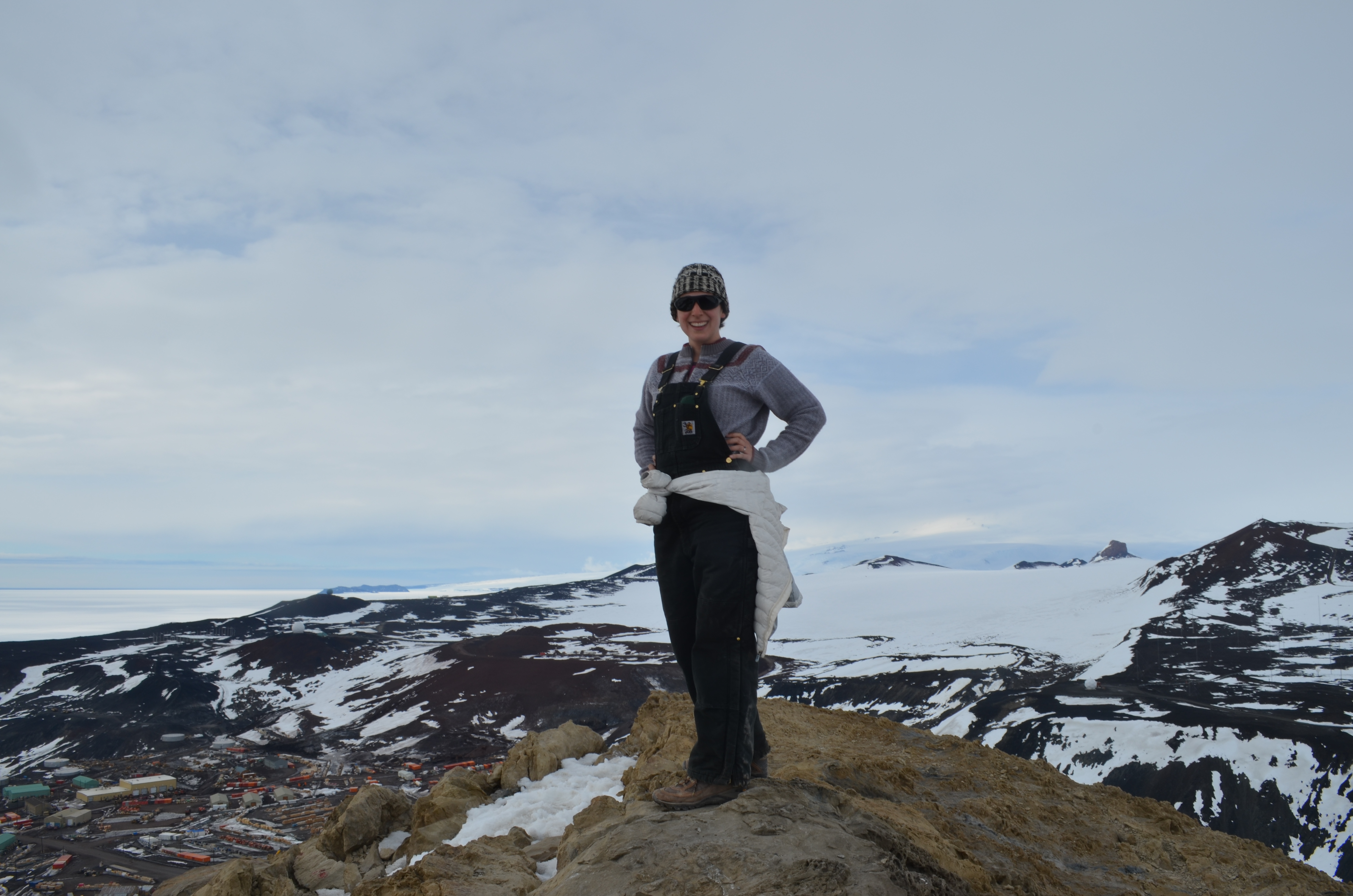 Michelle Brown at the top of Observation Hill. McMurdo Station, Antarctica.