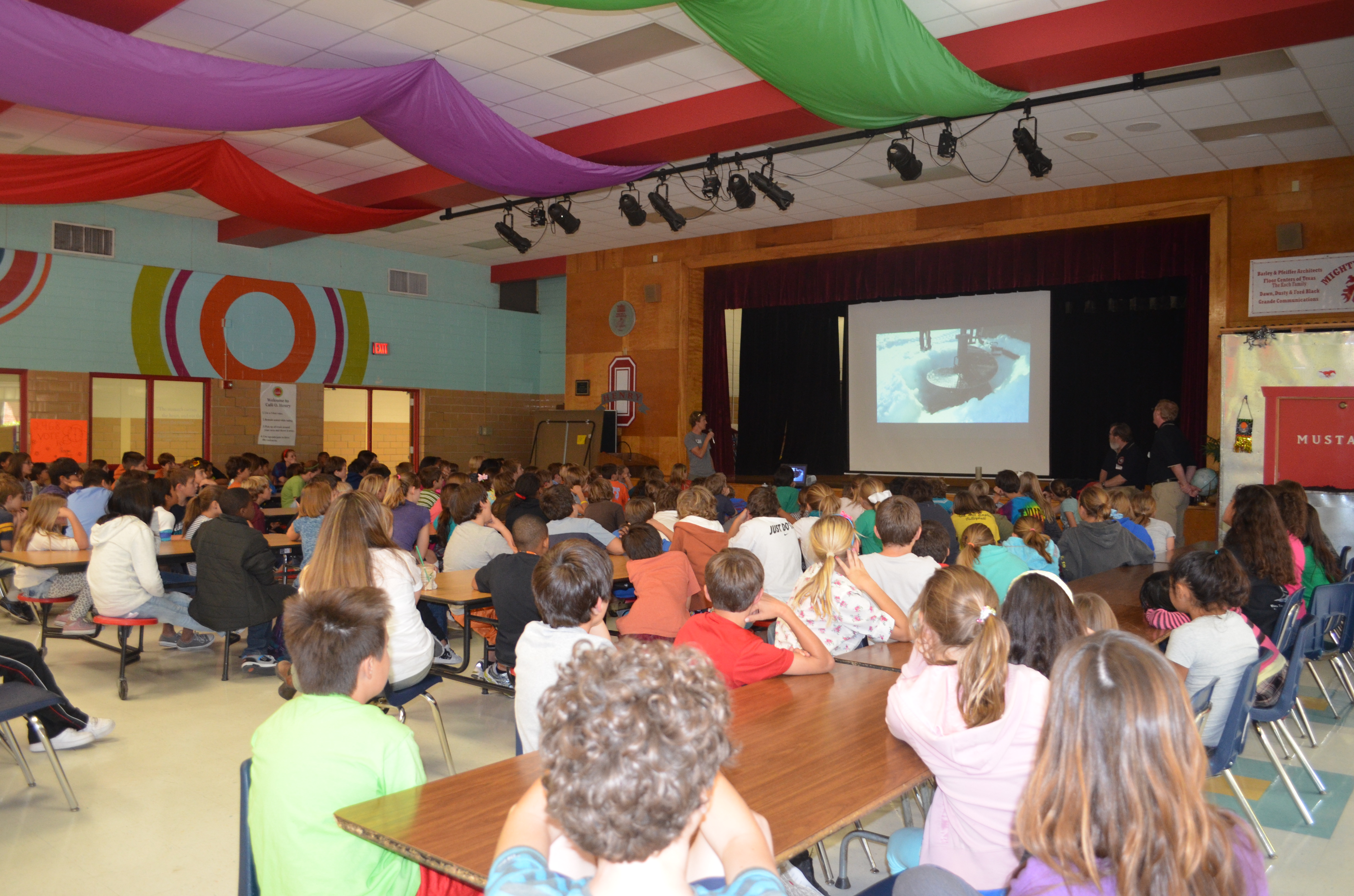 Researcher team members Terry Palmer, Andrew Klein, and Stephen Sweet give a presentation to students at O. Henry Middle School in Austin, Texas.