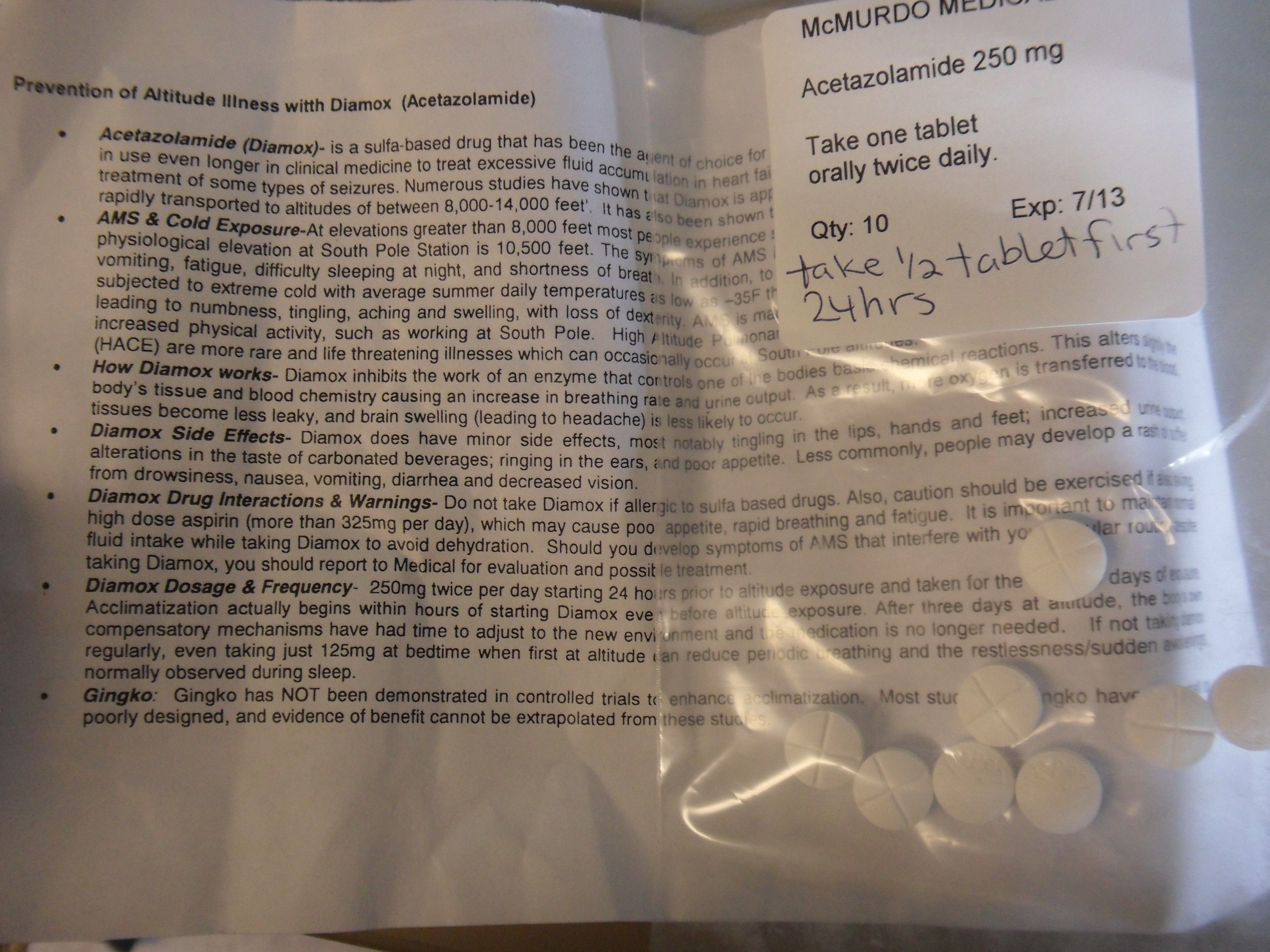 Michelle Brown receives Diamox pills to help reduce the risk of altitude sickness. McMurdo Station, Antarctica.