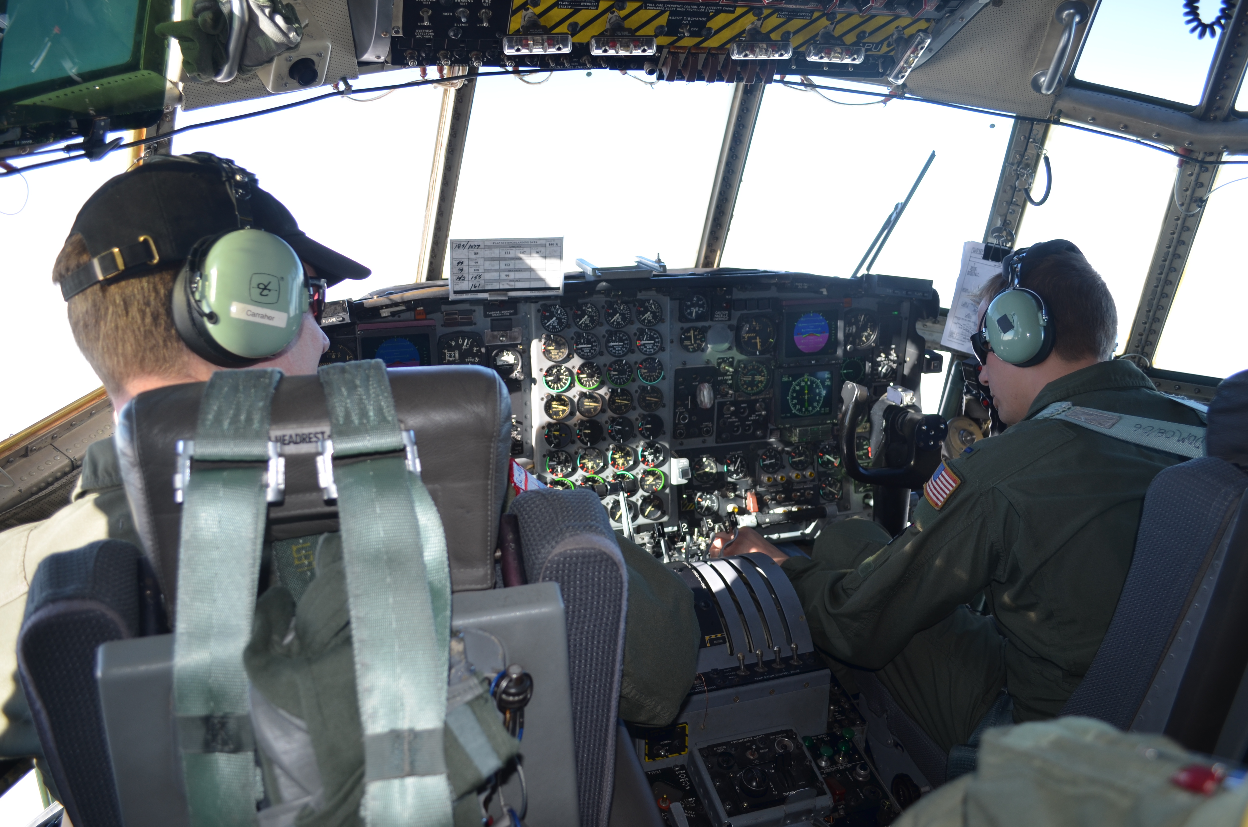 A view from inside the cockpit aboard the LC-130, on the flight from McMurdo Station to the South Pole Station.