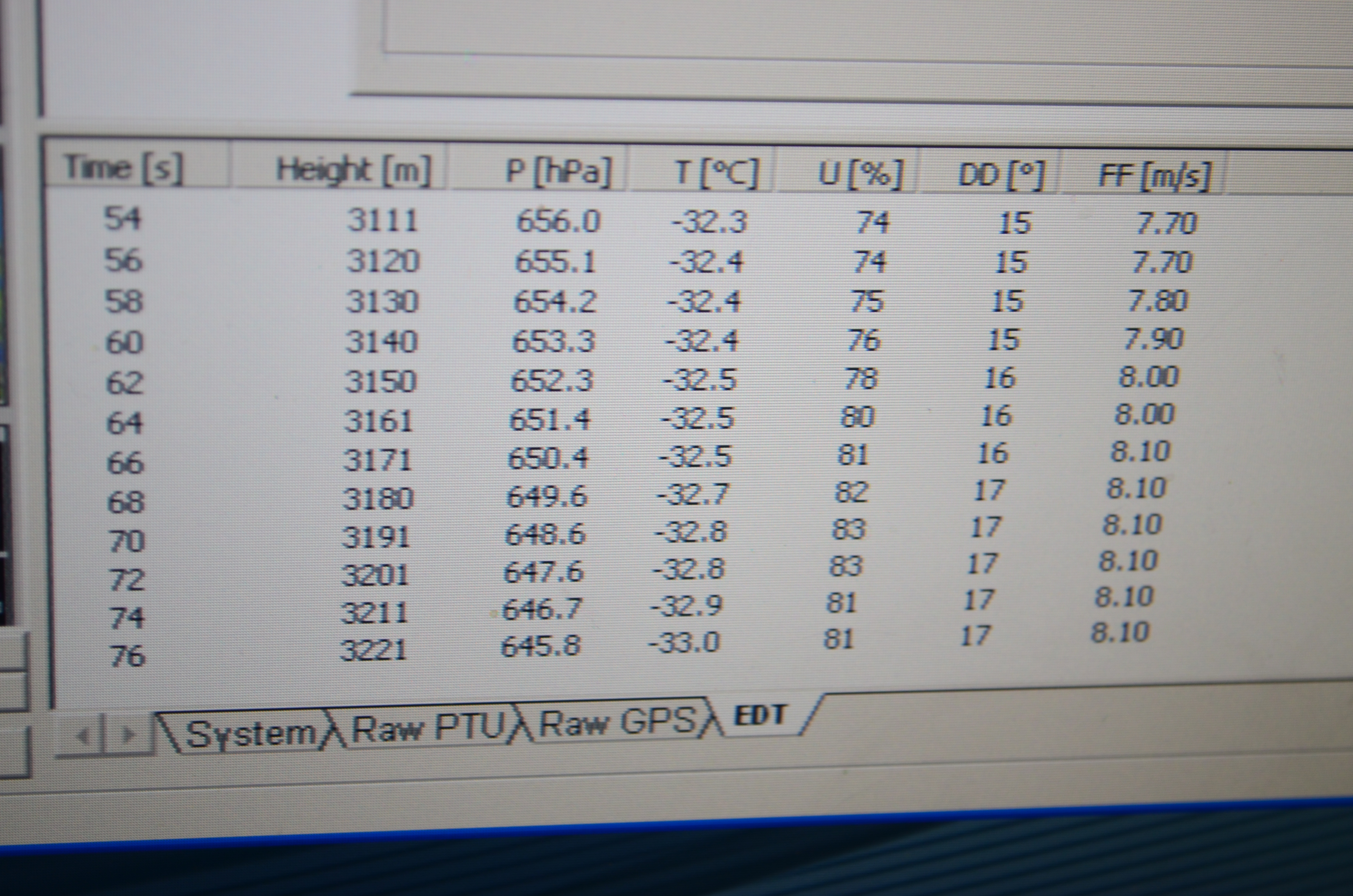 The computer back at the Balloon Inflation Facility (BIF) shows the data recorded from the weather balloon in real time. Amundsen–Scott South Pole Station, Antarctica.