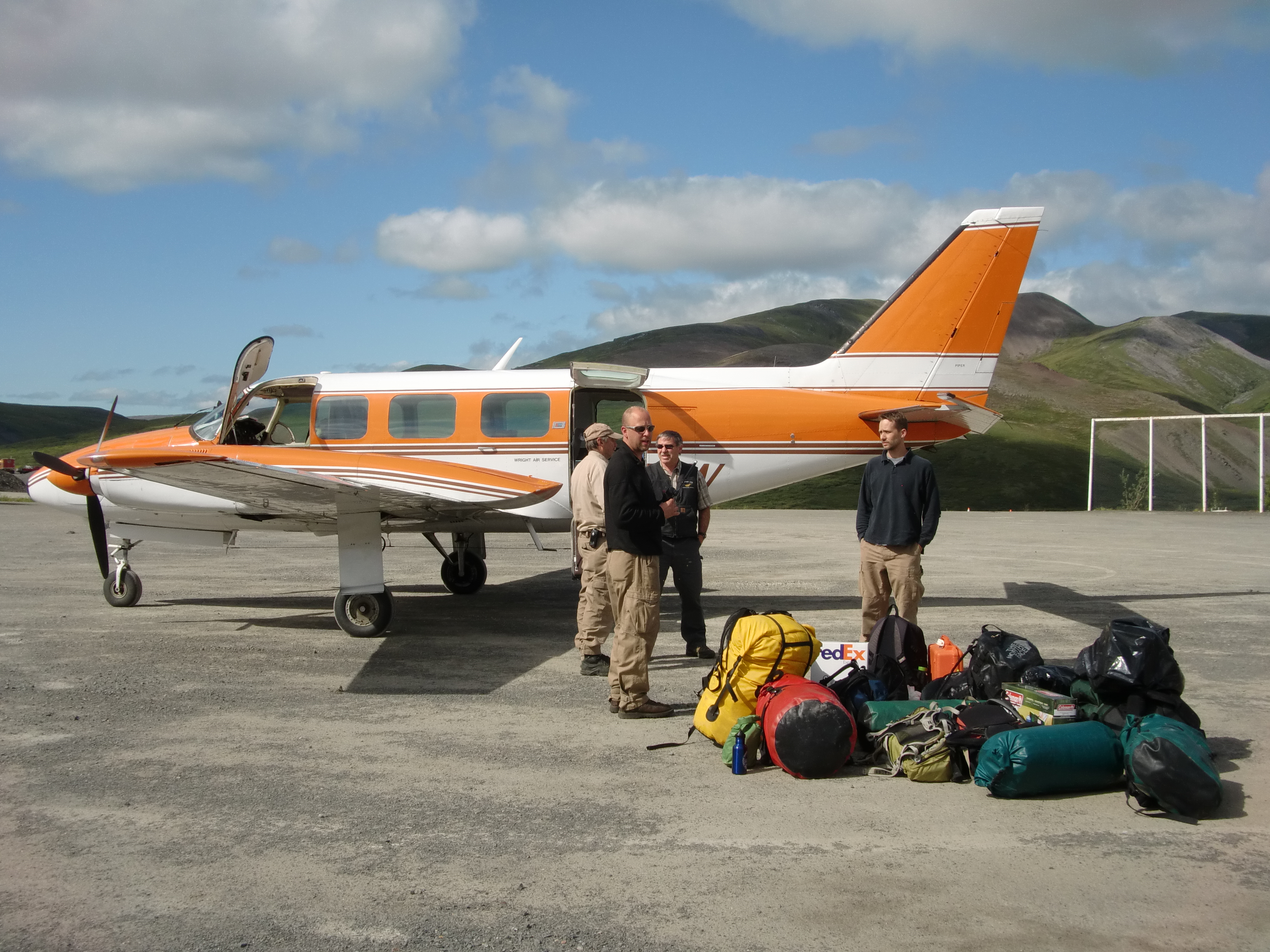 The team chartered a plane from Fairbanks to the Red Dog Mine around 30 miles from their site at Raven Bluff. At the Red Dog Mine, Alaska.
