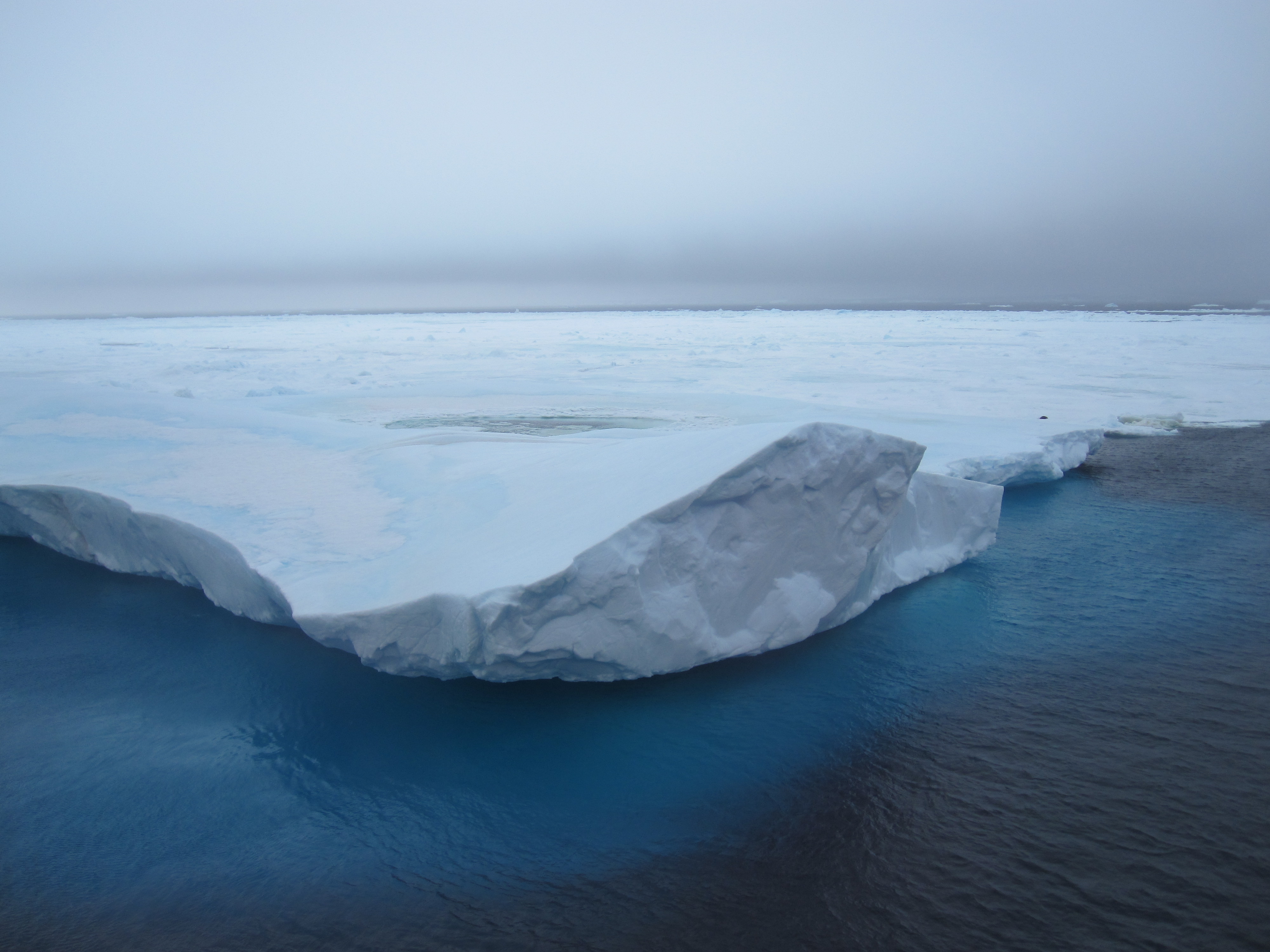 Amber Lancaster: "A large iceberg (look for the blue tint that shows the iceberg below the surface)." Aboard the Nathaniel B. Palmer icebreaker in the Weddell Sea, Antarctica.