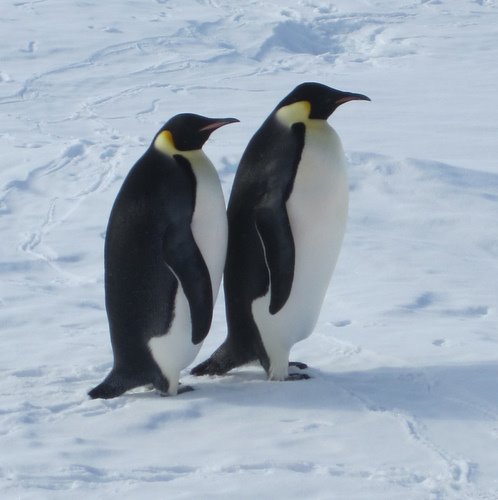 Two Emperor Penguins. At the outer Larsen A ice shelf, Weddell Sea, Antarctica.