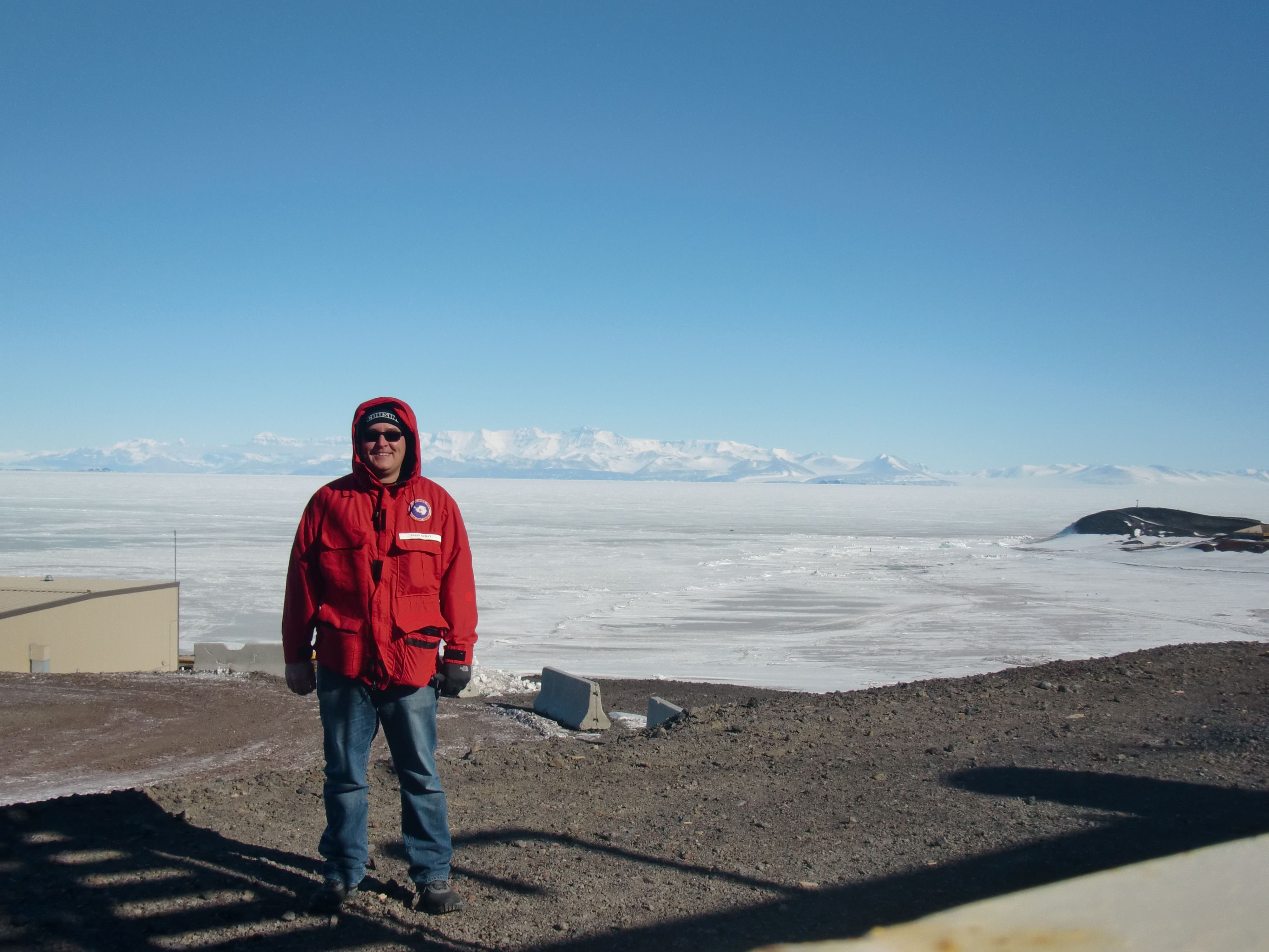 Brian DuBay: "Looking South toward white and black island." McMurdo Station, Antarctica.