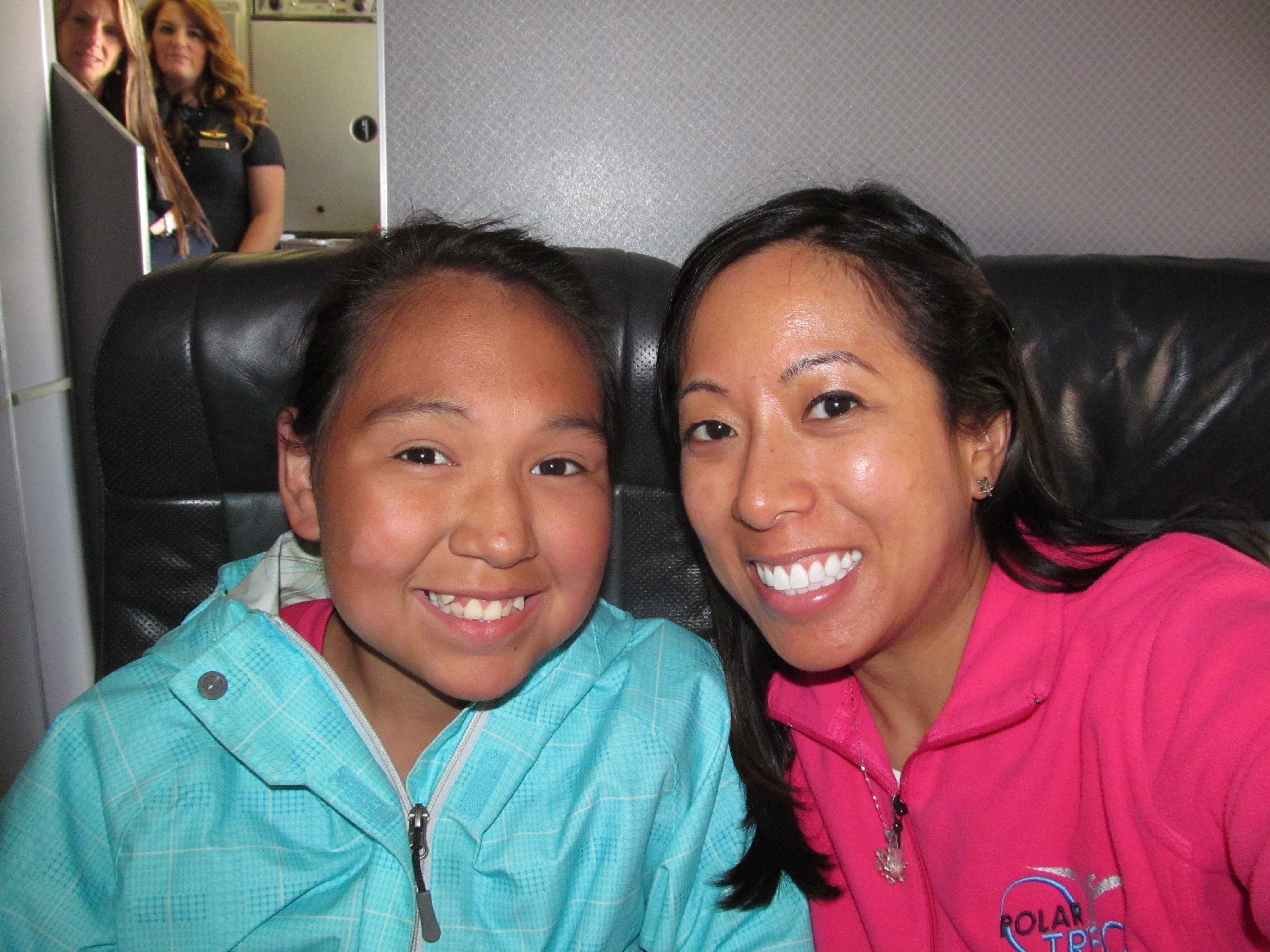Cristina Solis: "On the plane, I sat next to Courtney, a super nice local girl. She's 13, the same age as the students I teach back in Los Angeles!" On the plane in Alaska.