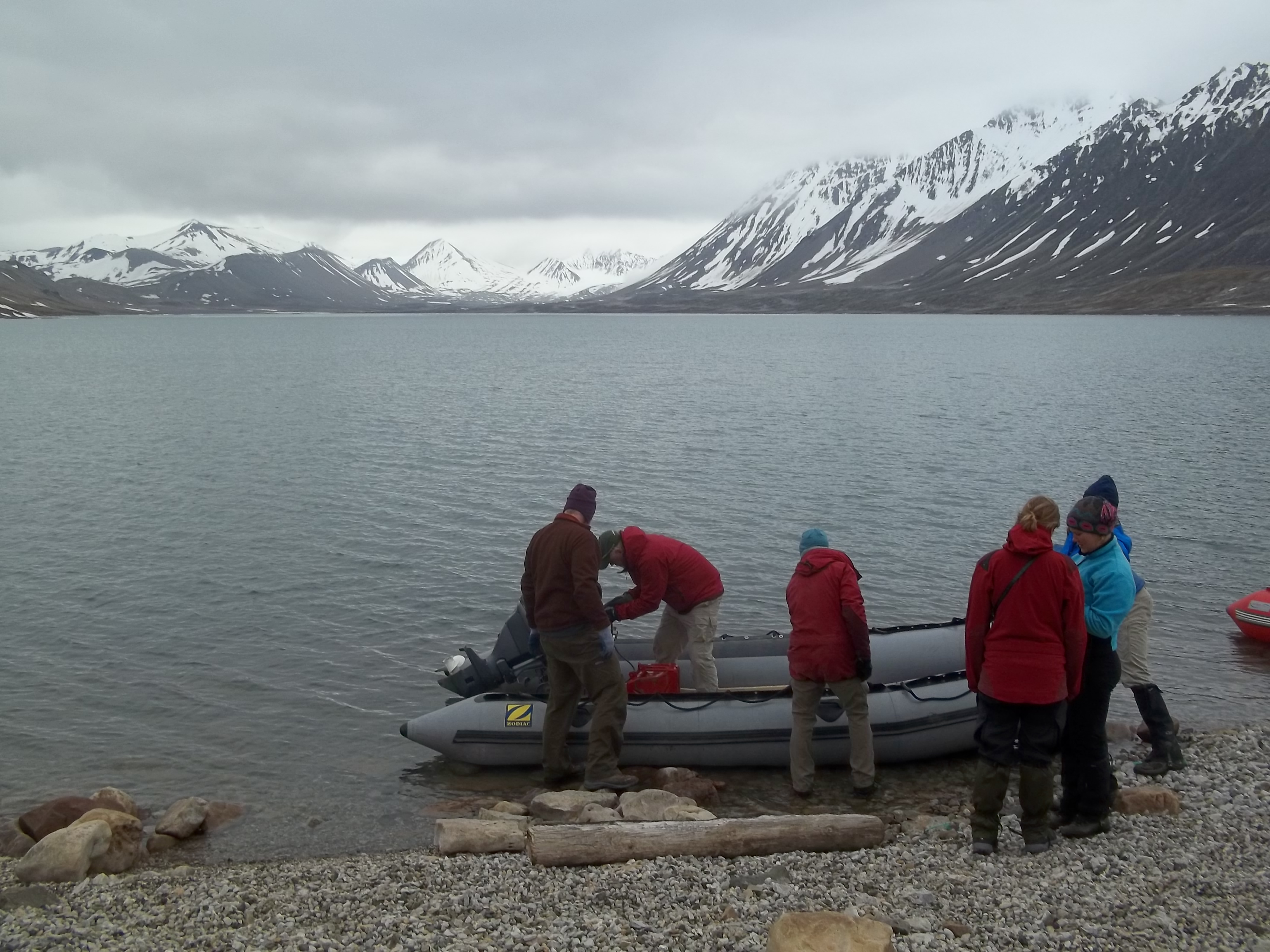 Dan Frost: "Fiddling around with finicky motors on our first afternoon at Lake Linne". Isfjord Radio at Kapp Linne, Svalbard.