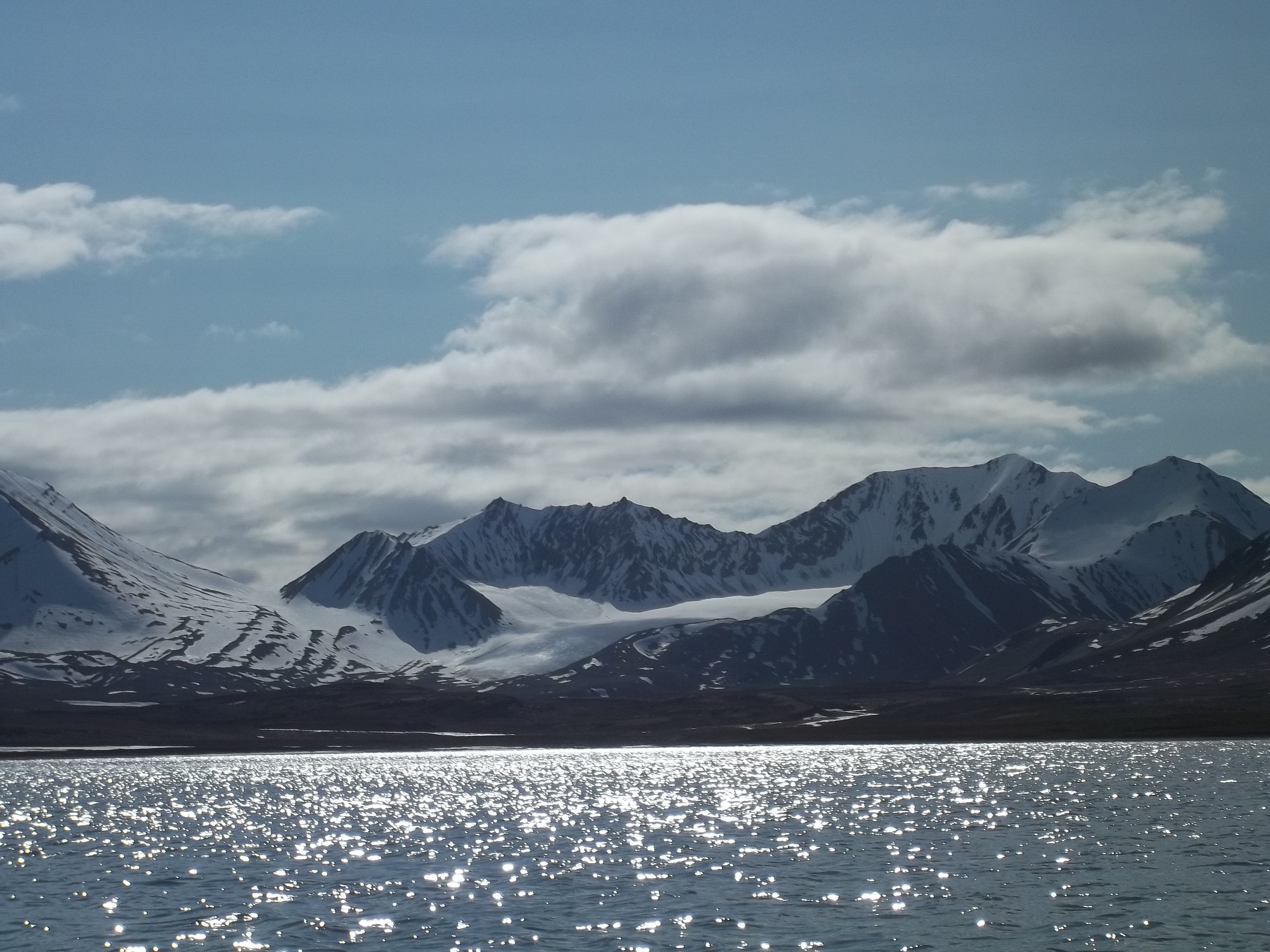 A view of Linnebreen from Linnevatnet. Isfjord Radio at Kapp Linne, Svalbard.