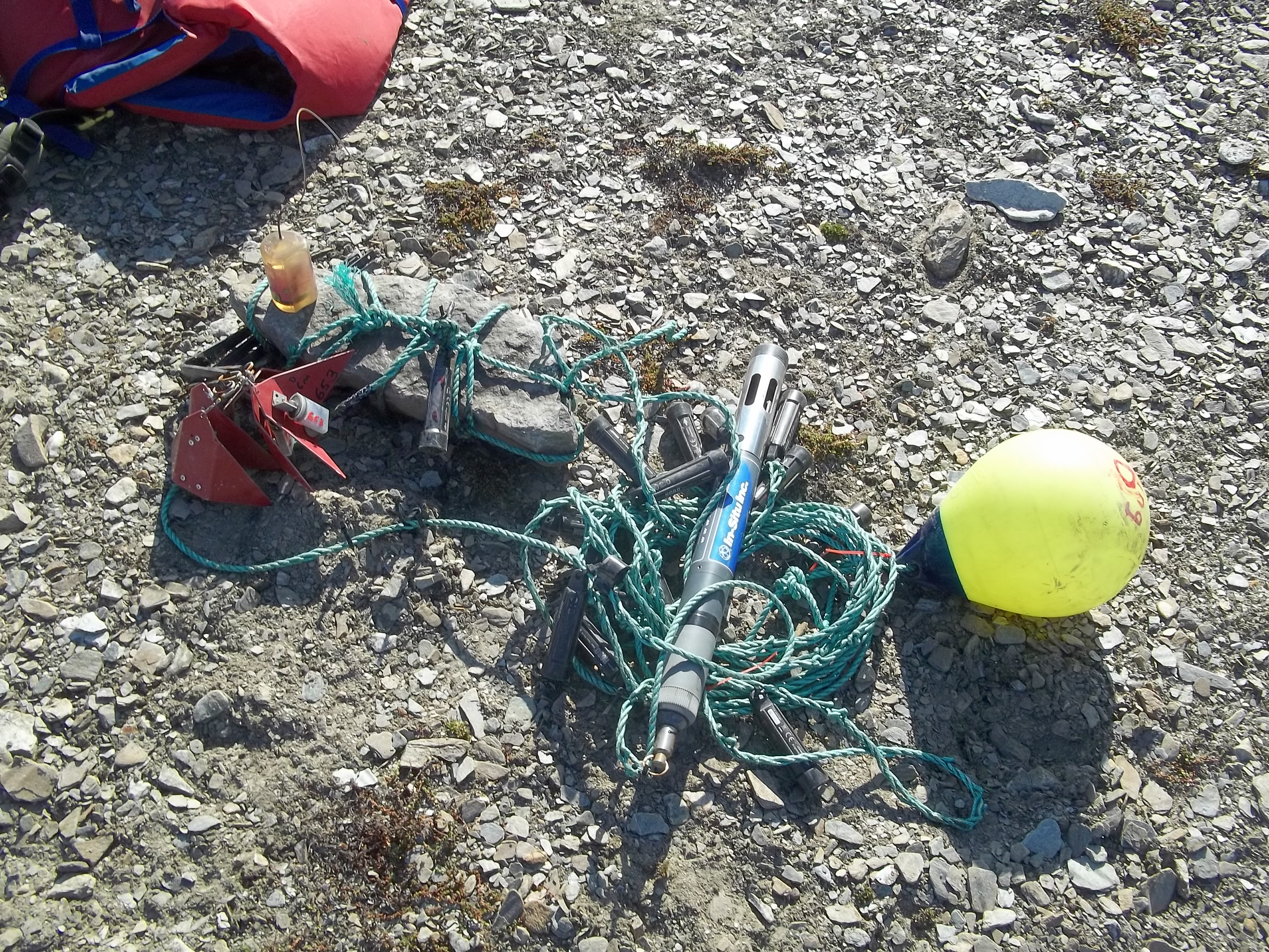 An example mooring with troll, probes, and velocity wings. Isfjord Radio at Kapp Linne, Svalbard.