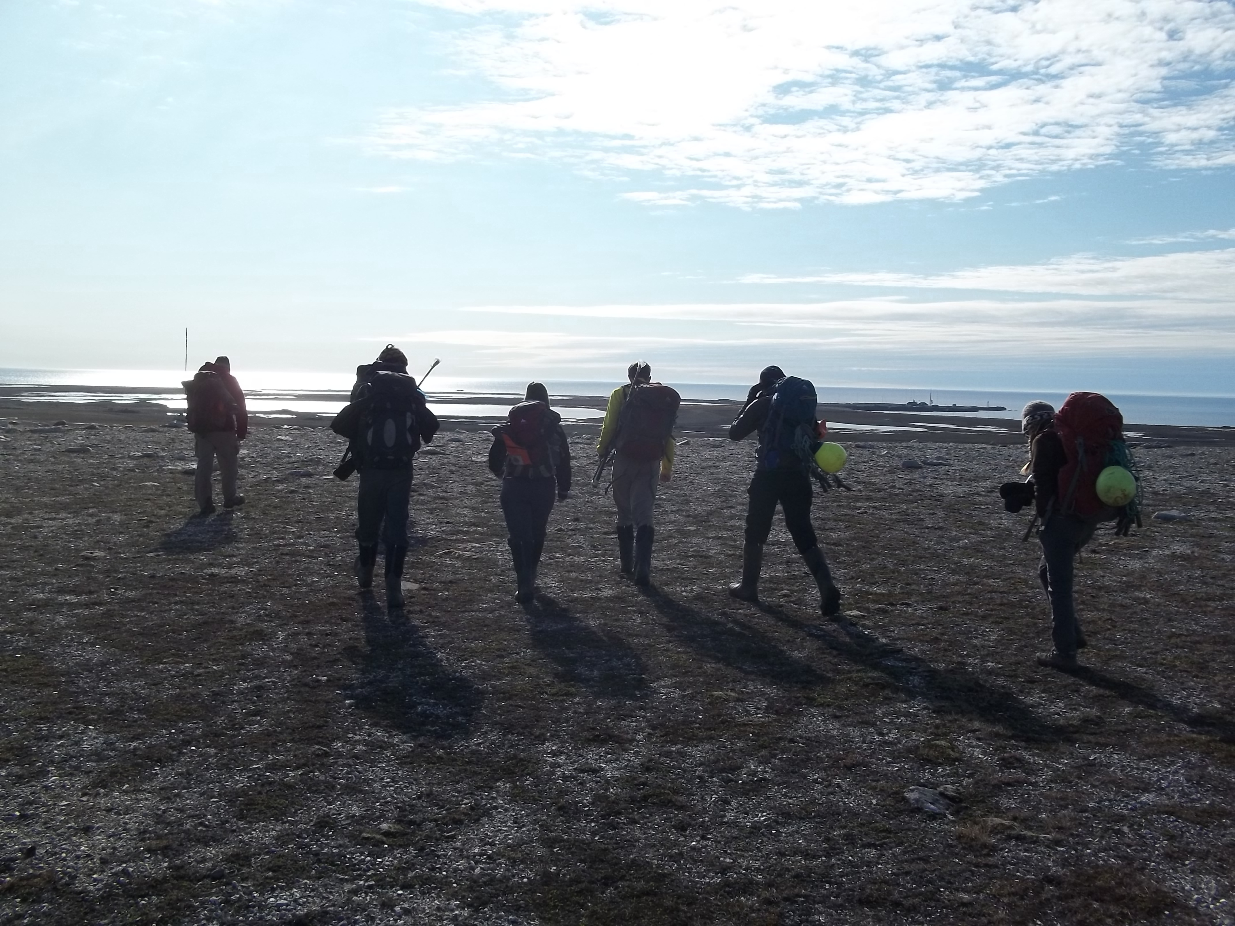 The team heads back to Isfjord Radio from a day of field work. Isfjord Radio at Kapp Linne, Svalbard.