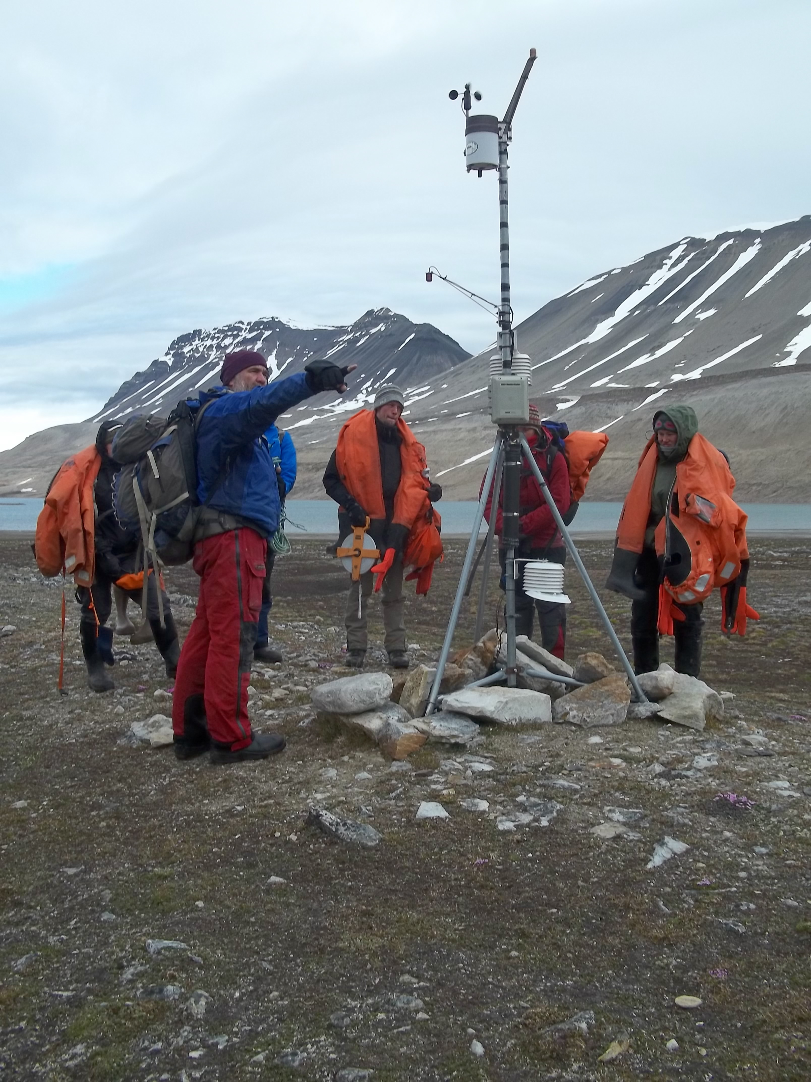 Steve Roof explains the workings of the weather station on the south shore of Linnevatnet. Isfjord Radio at Kapp Linne, Svalbard.