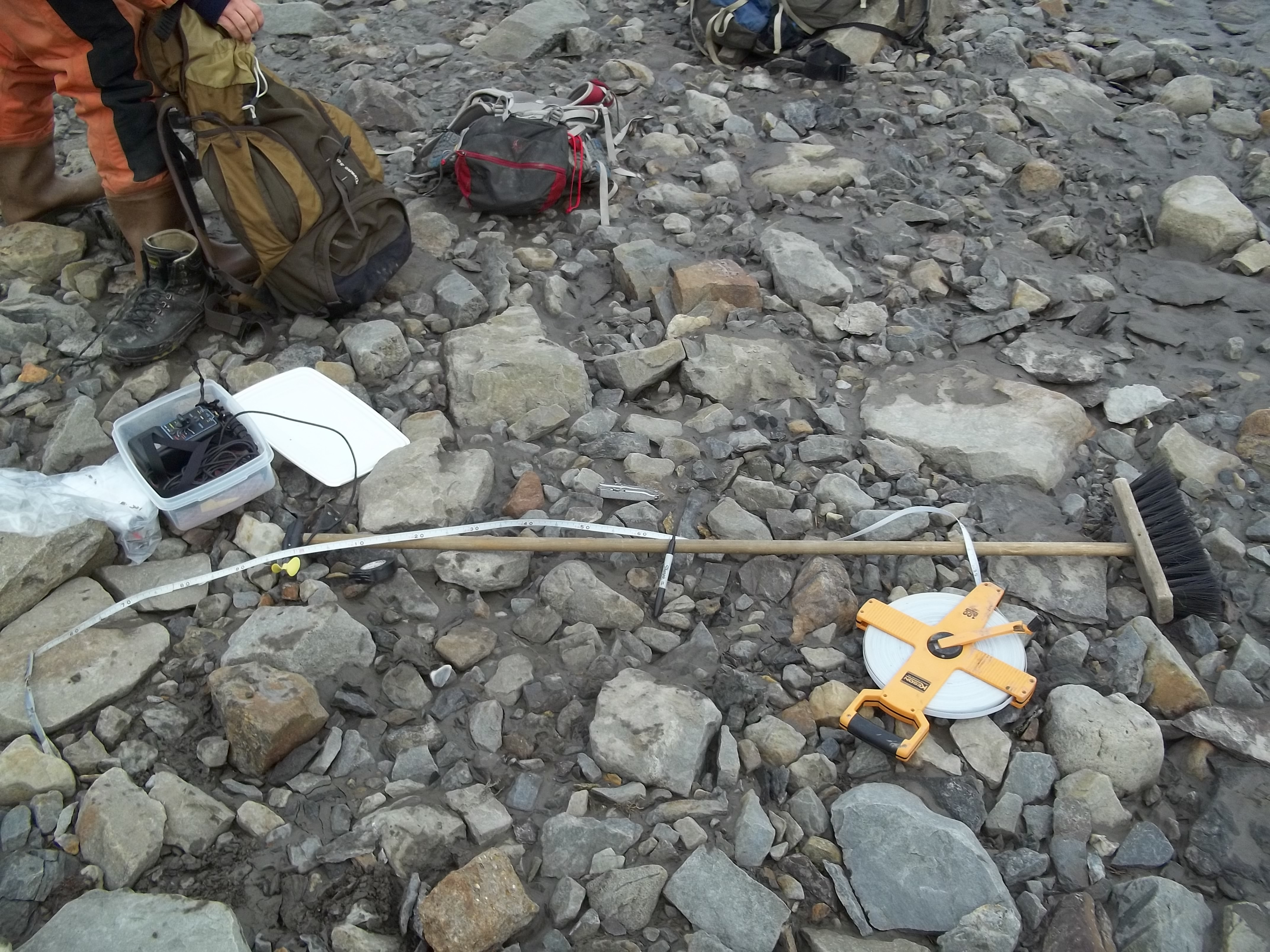 An impromptu stream gauge made from a broom handle. Isfjord Radio at Kapp Linne, Svalbard.
