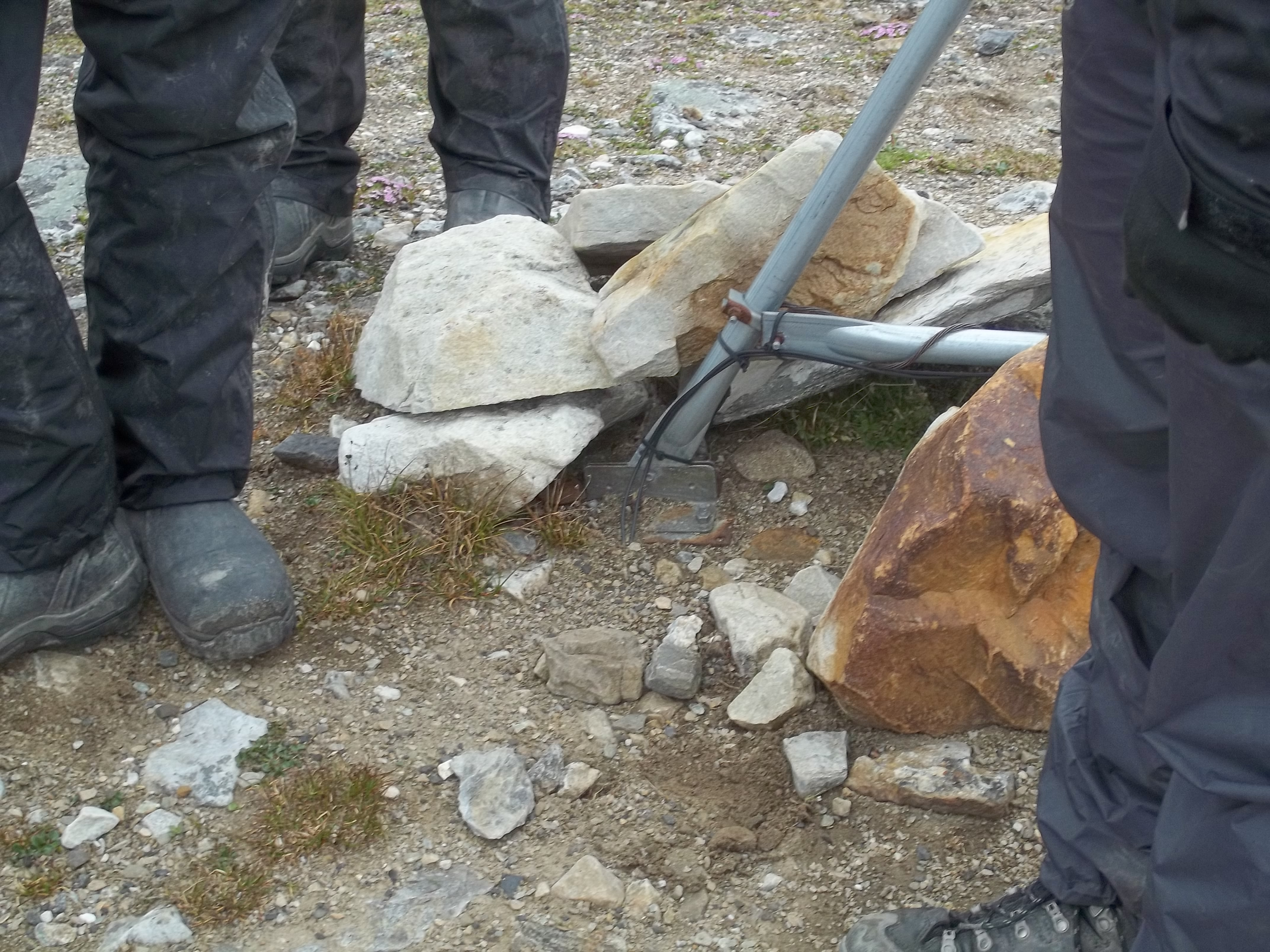Wires routed underground to temperature probes from the weather station. Isfjord Radio at Kapp Linne, Svalbard.