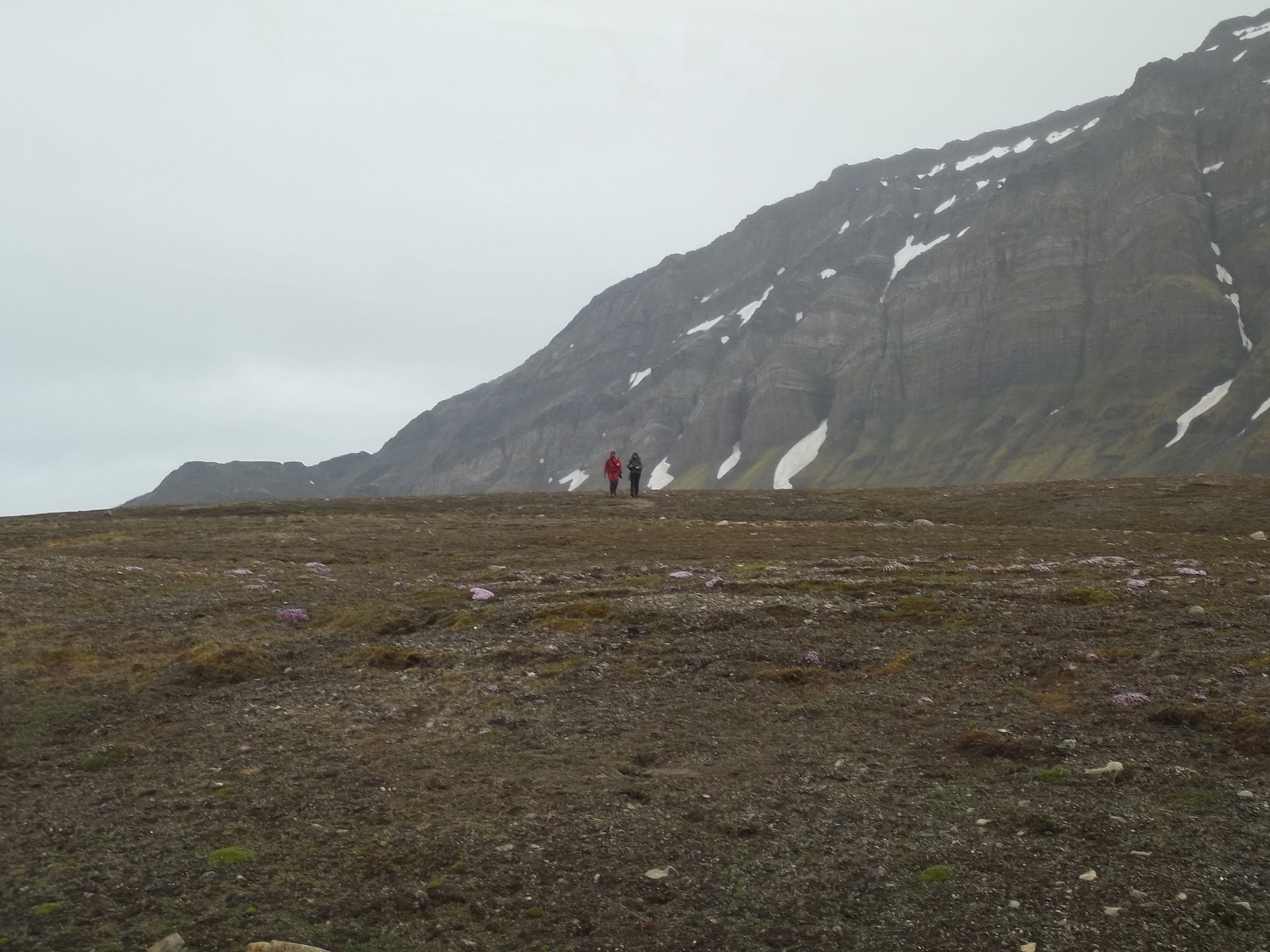 Hanna Axén and Elin Roalkvam head back from the karst. Isfjord Radio at Kapp Linne, Svalbard.