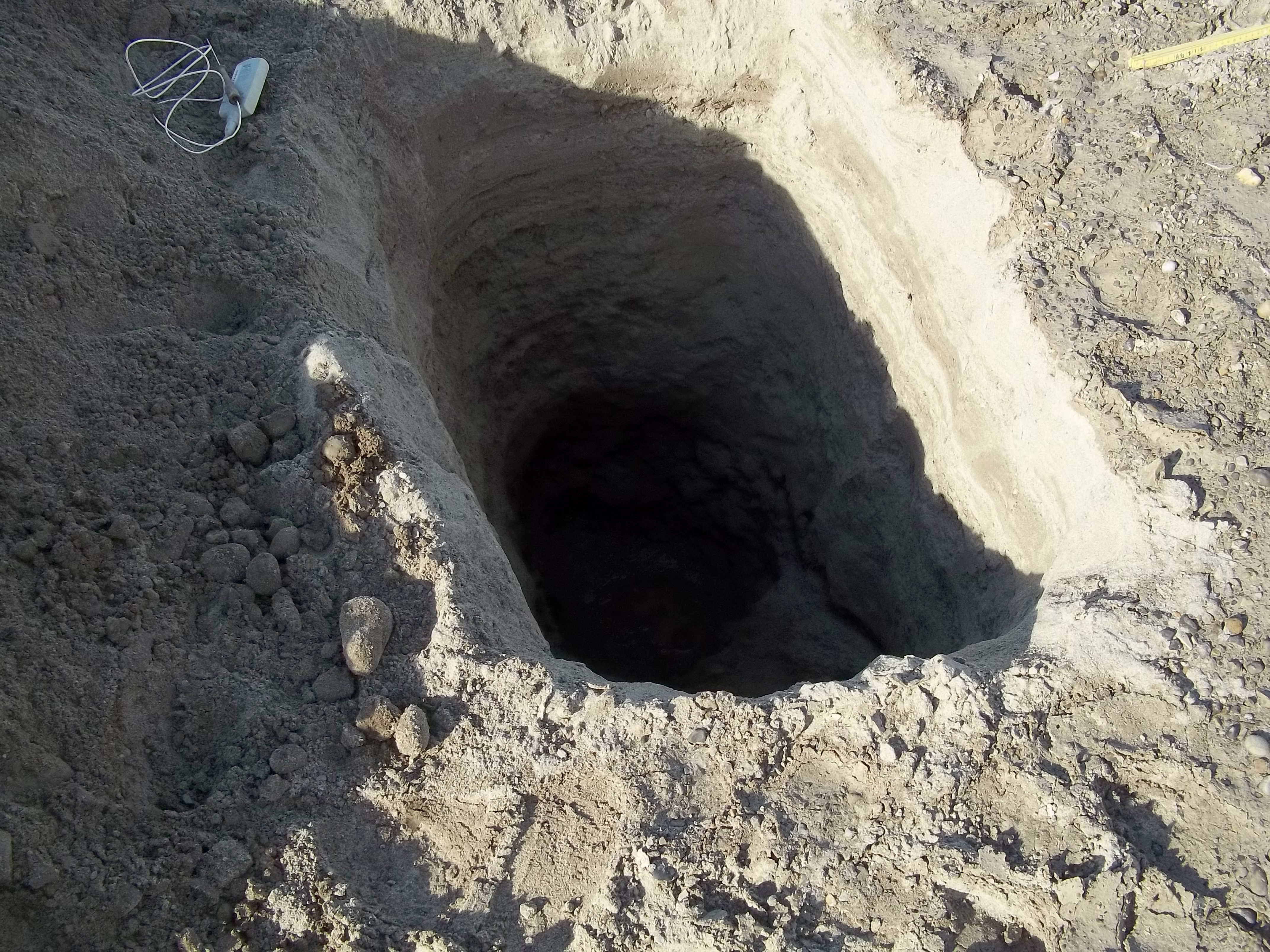 A test pit that was dug to permafrost in the delta of lake #4. Isfjord Radio at Kapp Linne, Svalbard.