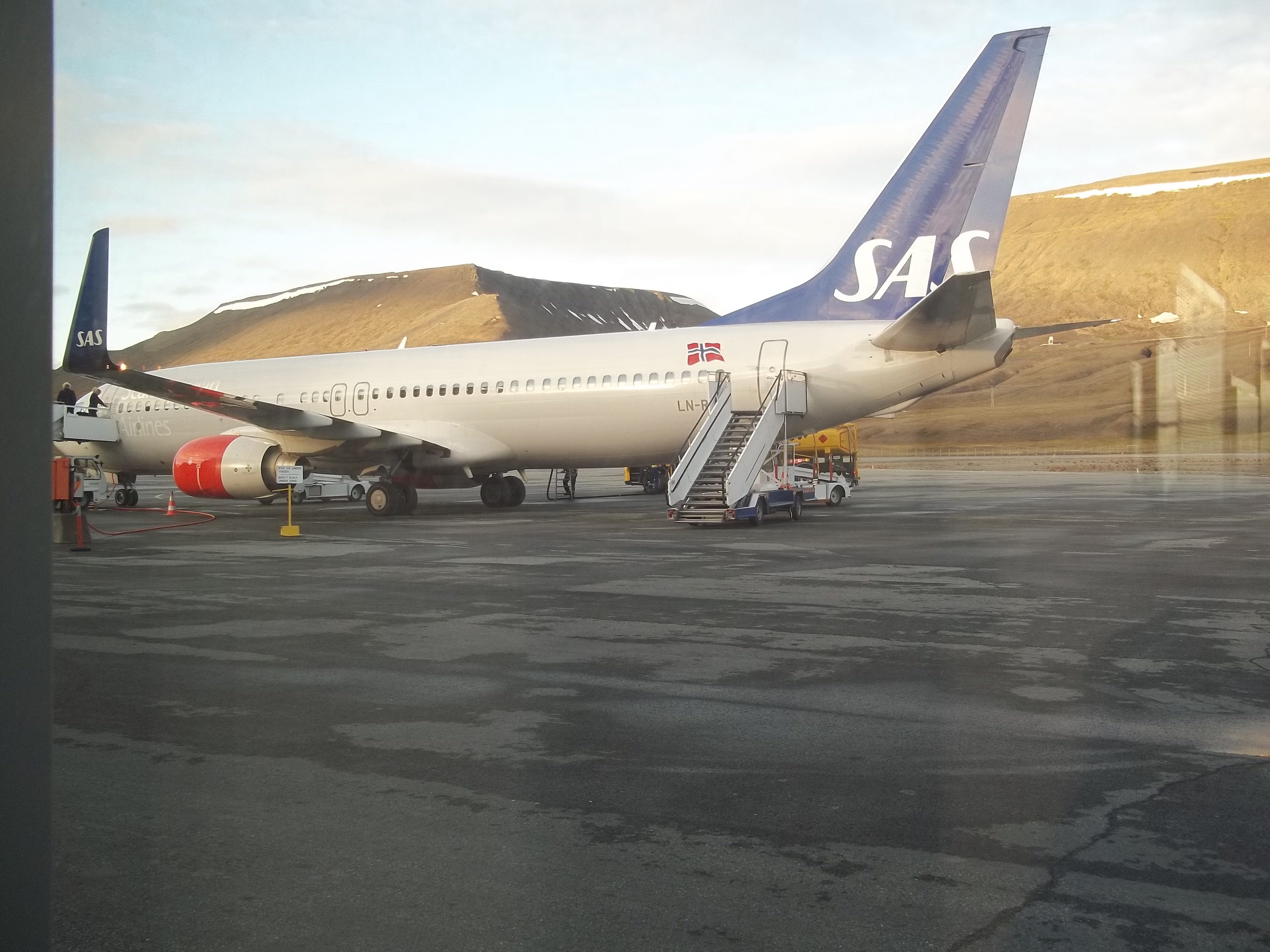 The plane at 3am that is ready to take Dan Frost and team home. The Svalbard Global Seed Vault can be seen in the background. Longyearbyen, Svalbard.