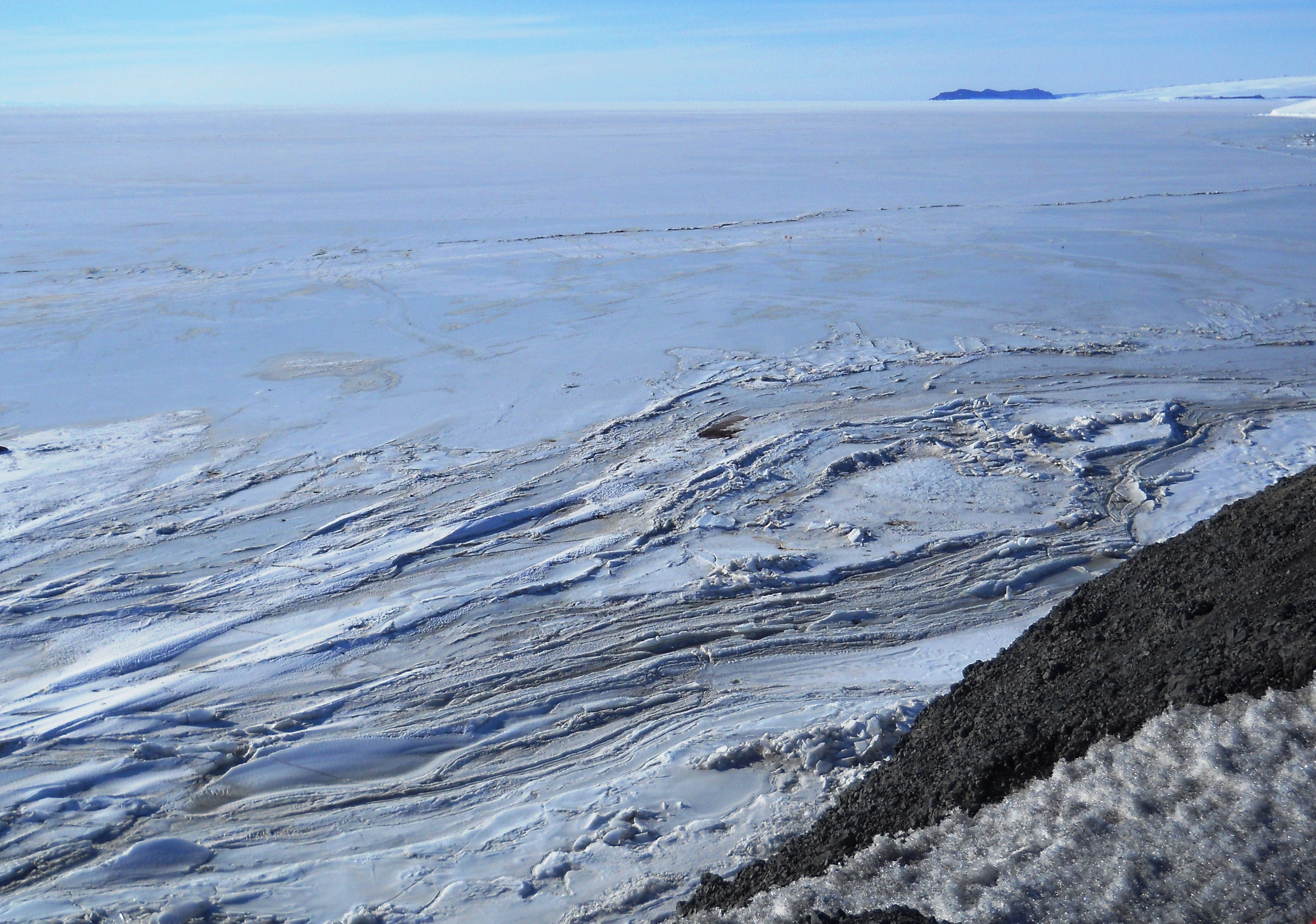 Pressure ridges on the sea ice in McMurdo Sound, Antarctica.