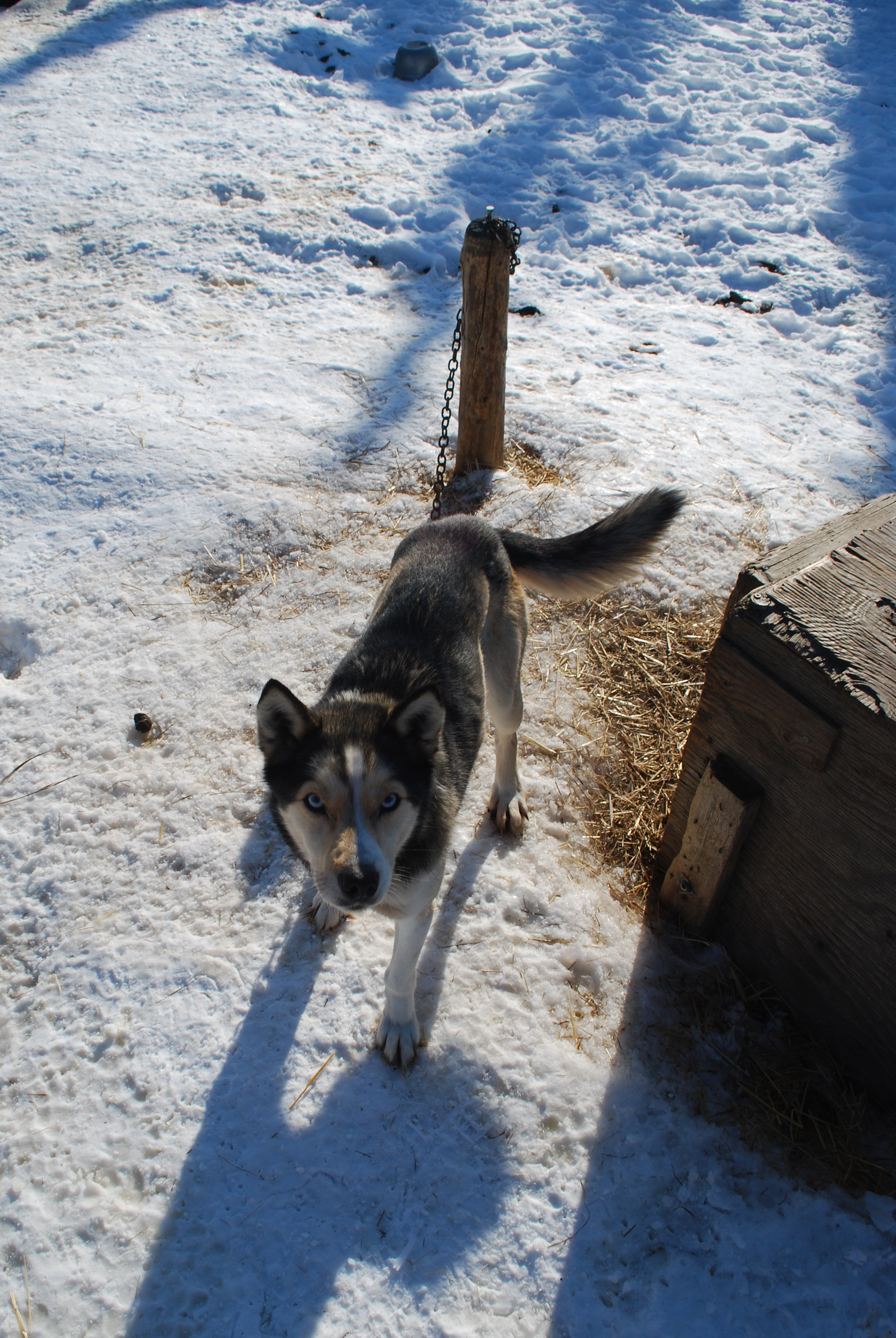 Shrimp the sled dog poses for a photo. CiPEHR study site outside of Healy, Alaska.