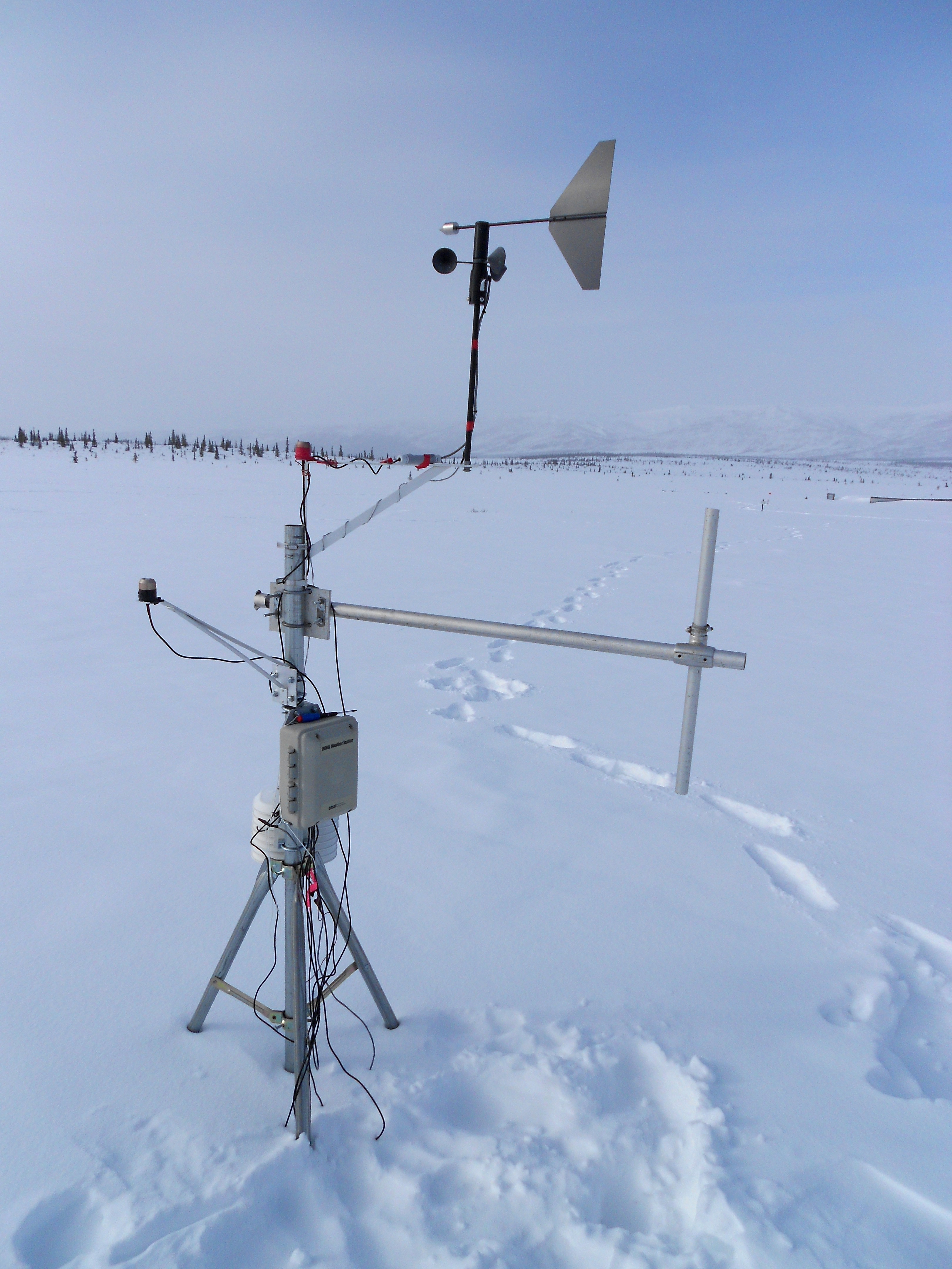 The HOBO weather station in the winter. CiPEHR study site outside of Healy, Alaska.