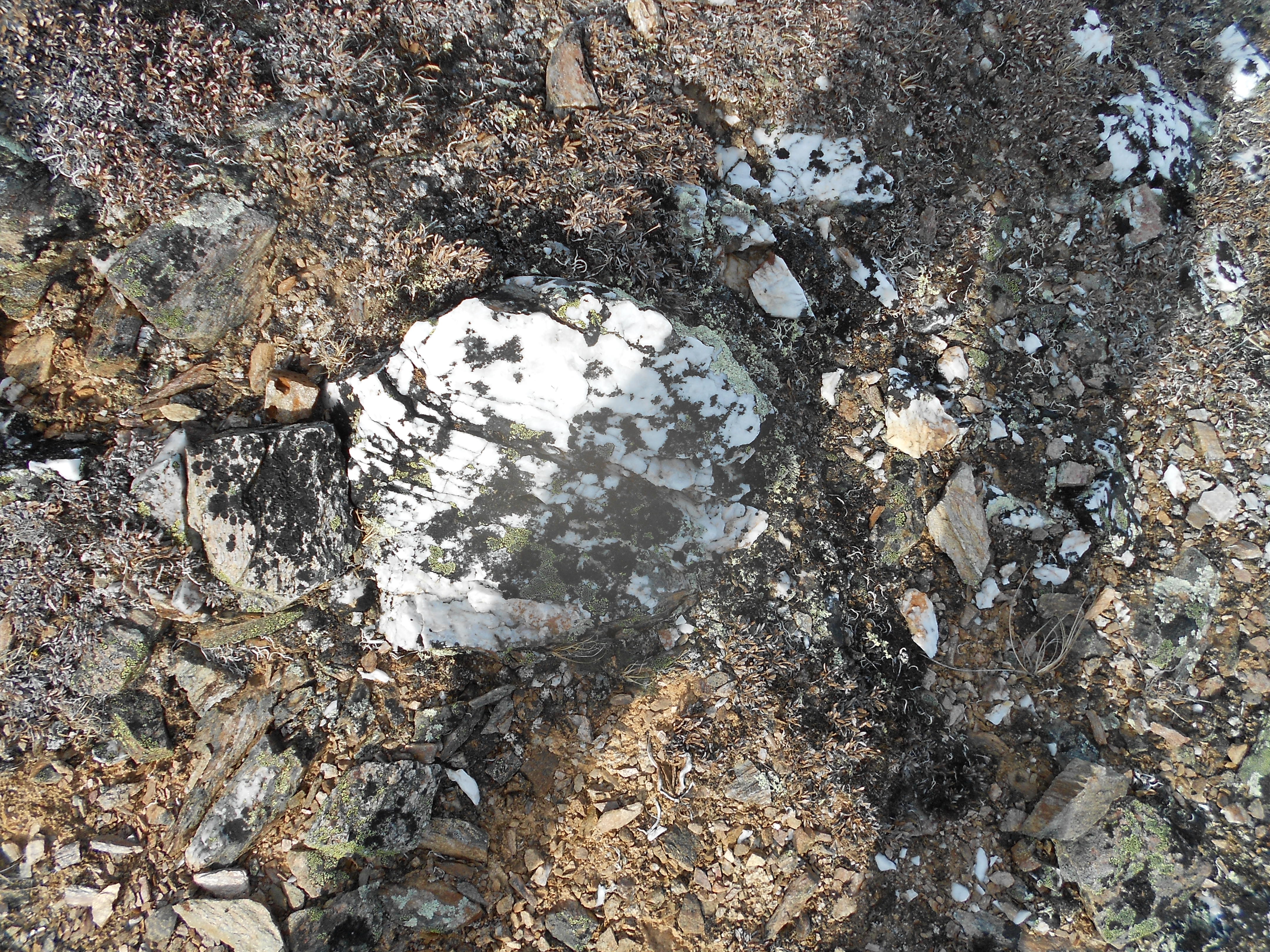 John Wood spots a layer of quartz in schist rock, during his hike up to Mt. Healy. Near the CiPEHR study site outside of Healy, Alaska.