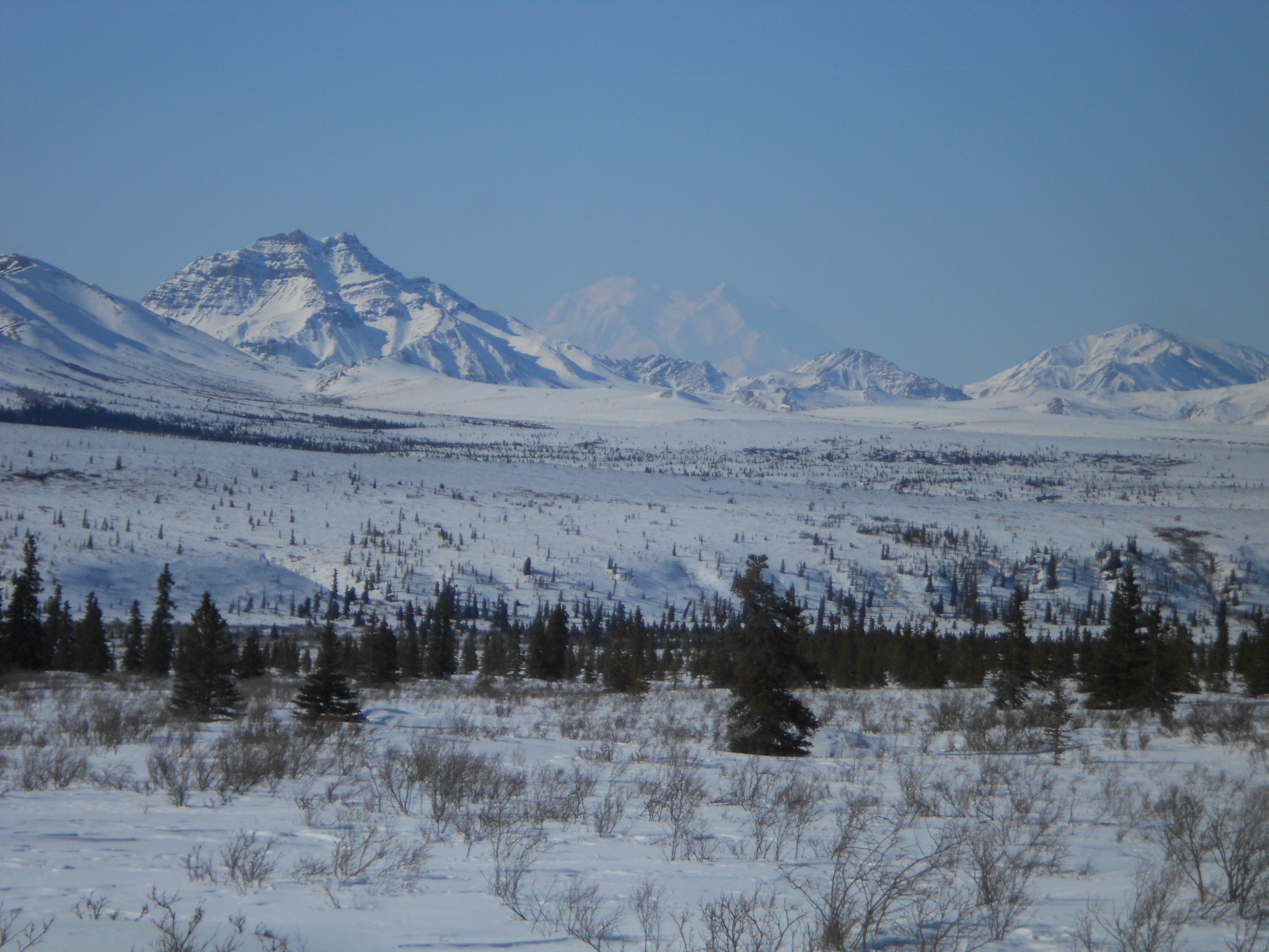 In the center is Denali, the tallest mountain in North America at 20,237ft. Denali National Park and Preserve, Alaska.