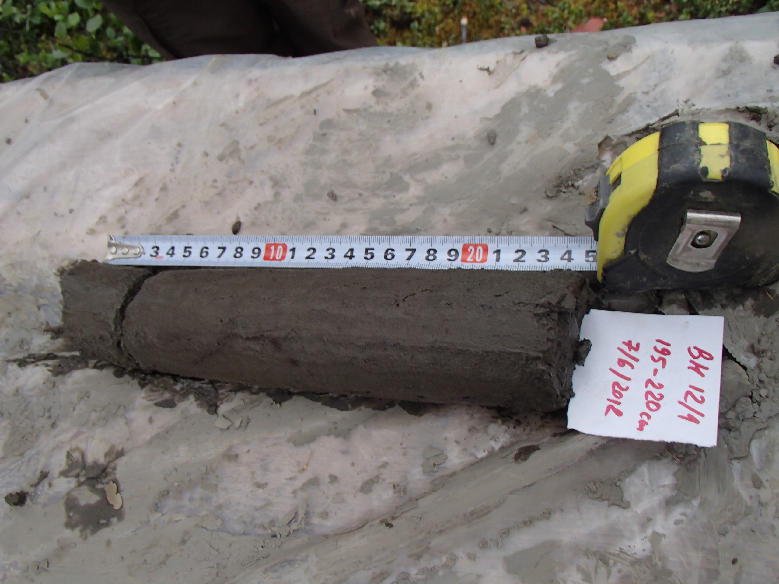 Here is a 25 cm-long permafrost core. This one contains almost no ice. Later cores had considerably different compositions. Cherskiy, Russia.