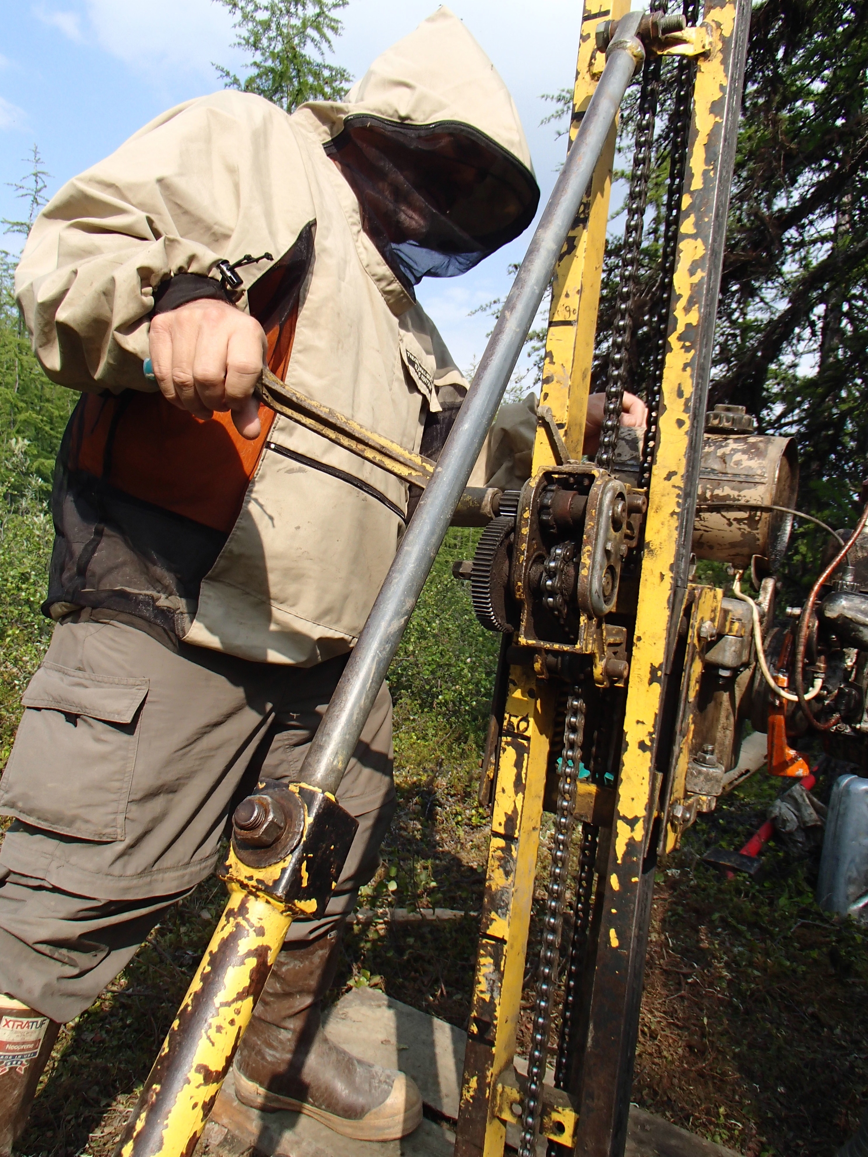 Mark Paricio drills a permafrost core. Cherskiy, Russia.