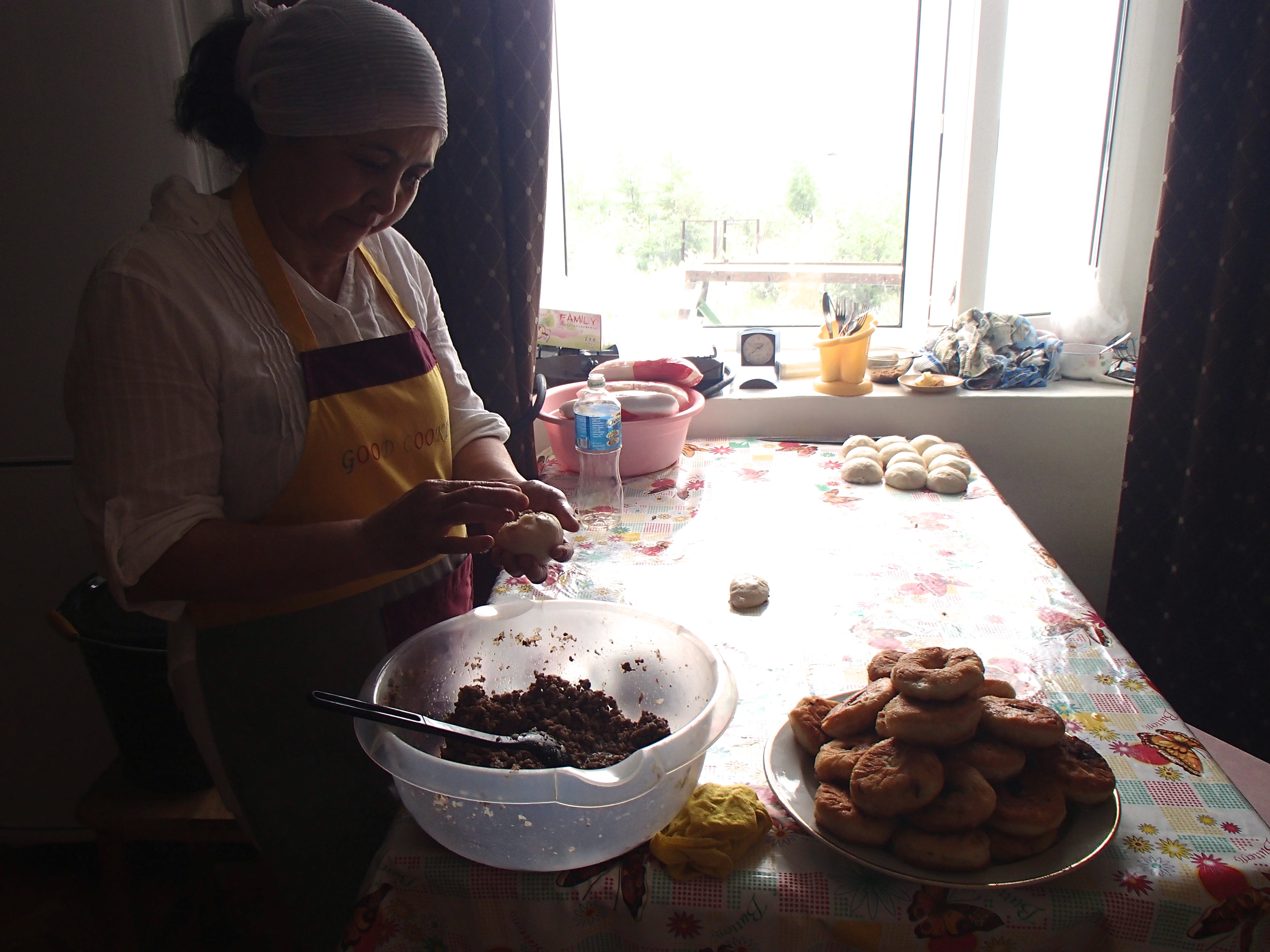 Northeast Science Station cook Khalida Dautova stuffs the fresh homemade dough with the moose meat filler. Cherskiy, Russia.