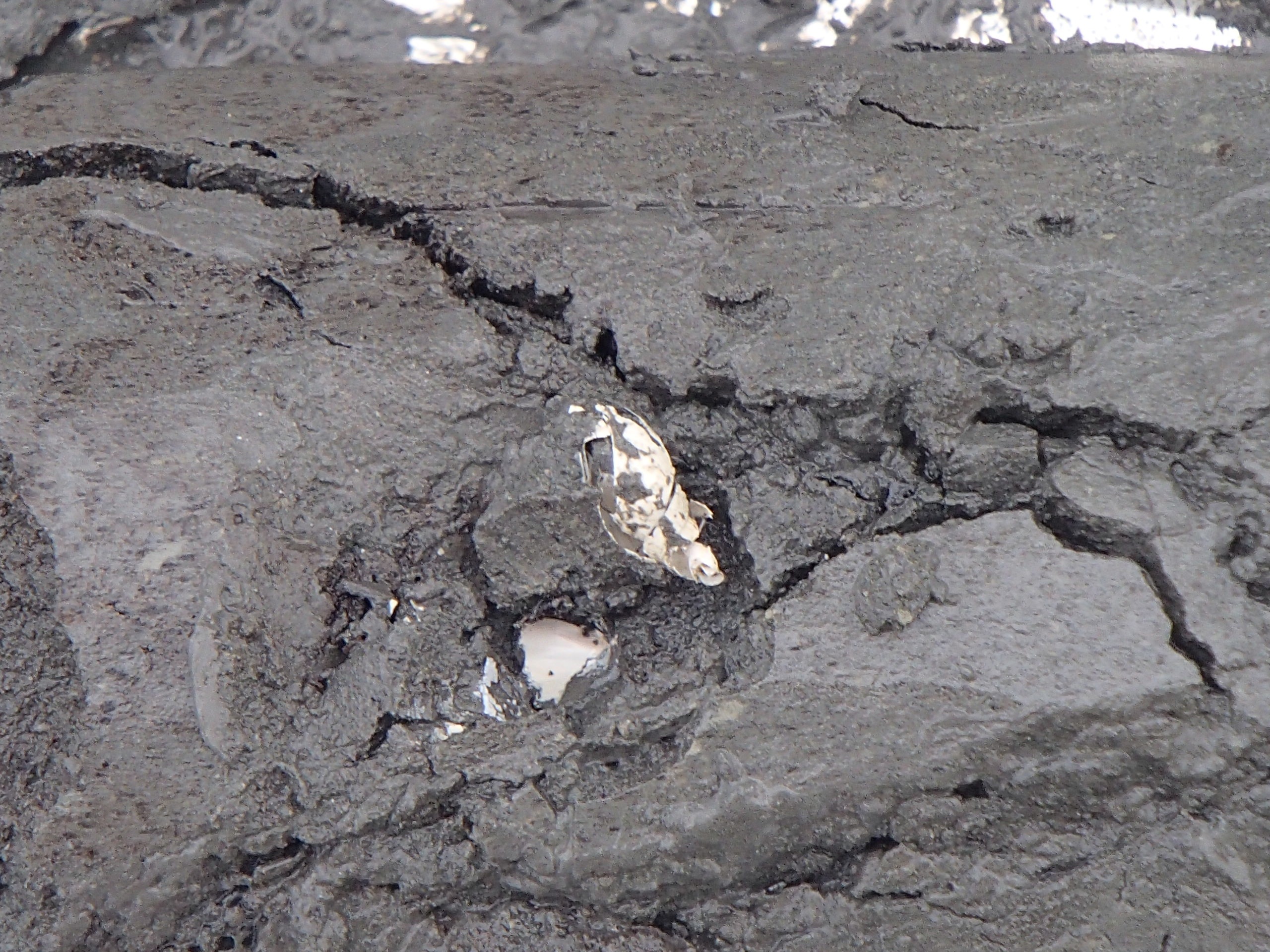 This permafrost core sample taken at Pleistocene Park contains ancient shells frozen in the soil. The sample may be between 10,000 to 30,000 years old. At Pleistocene Park, south of Cherskiy, Russia.