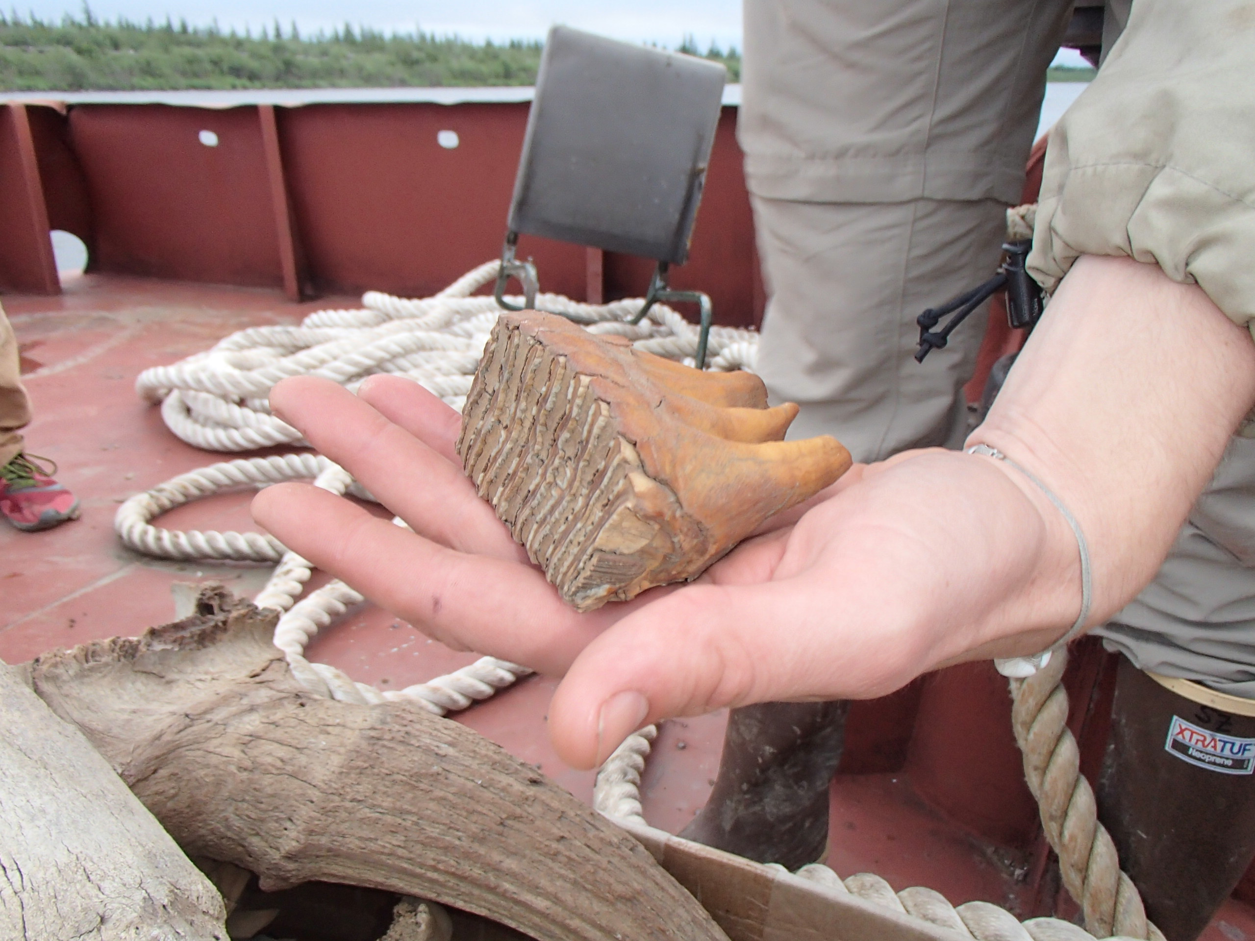 An ancient mammoth tooth from Duvannyi yar. Duvanny Yar, Russia.