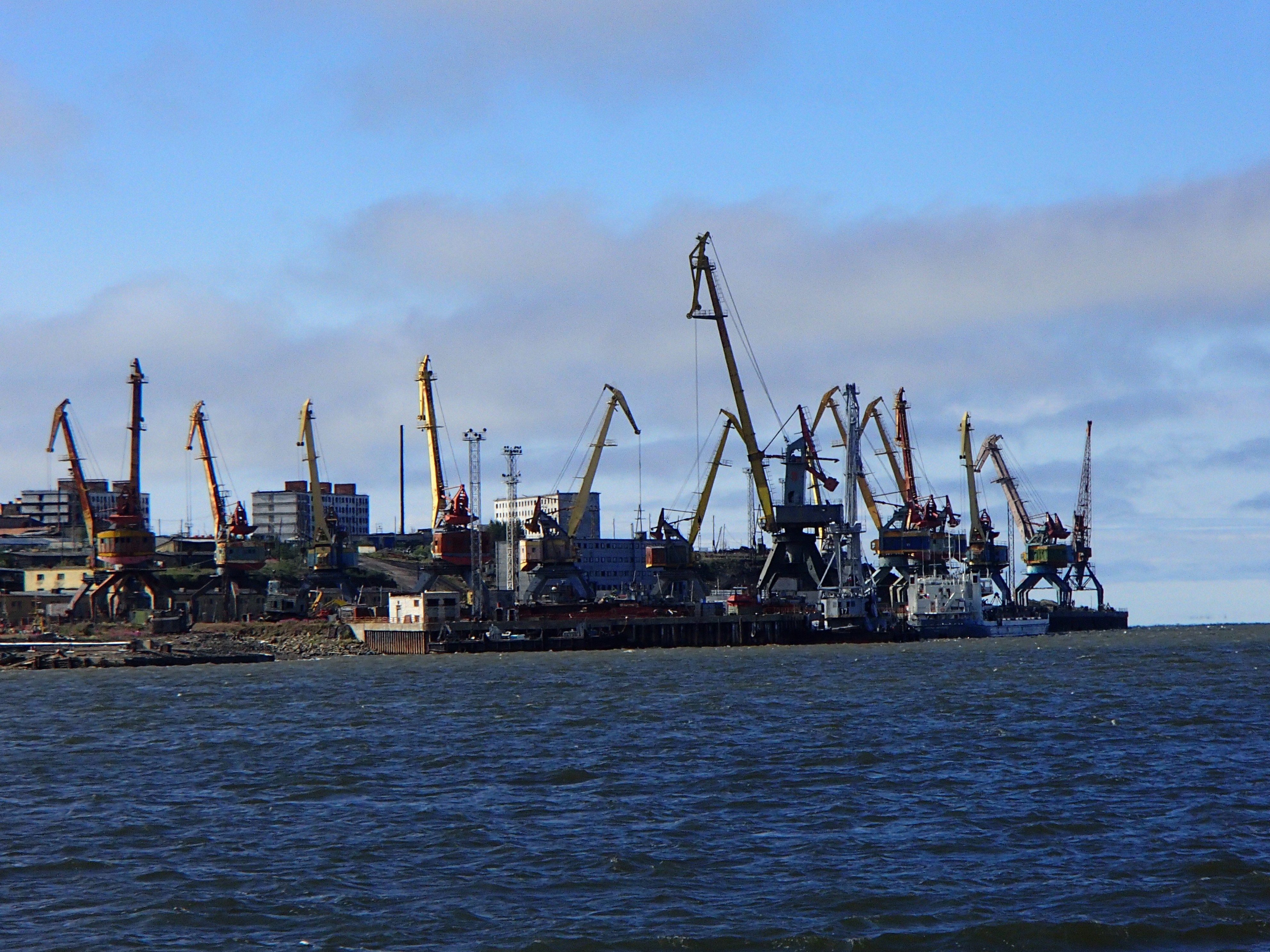 The abandoned cranes at the abandoned river port of Cherskiy hint at the role of the town in Soviet times. An estimated 2500 inhabitants still live in the town that once held 18,000. Cherskiy, Russia.