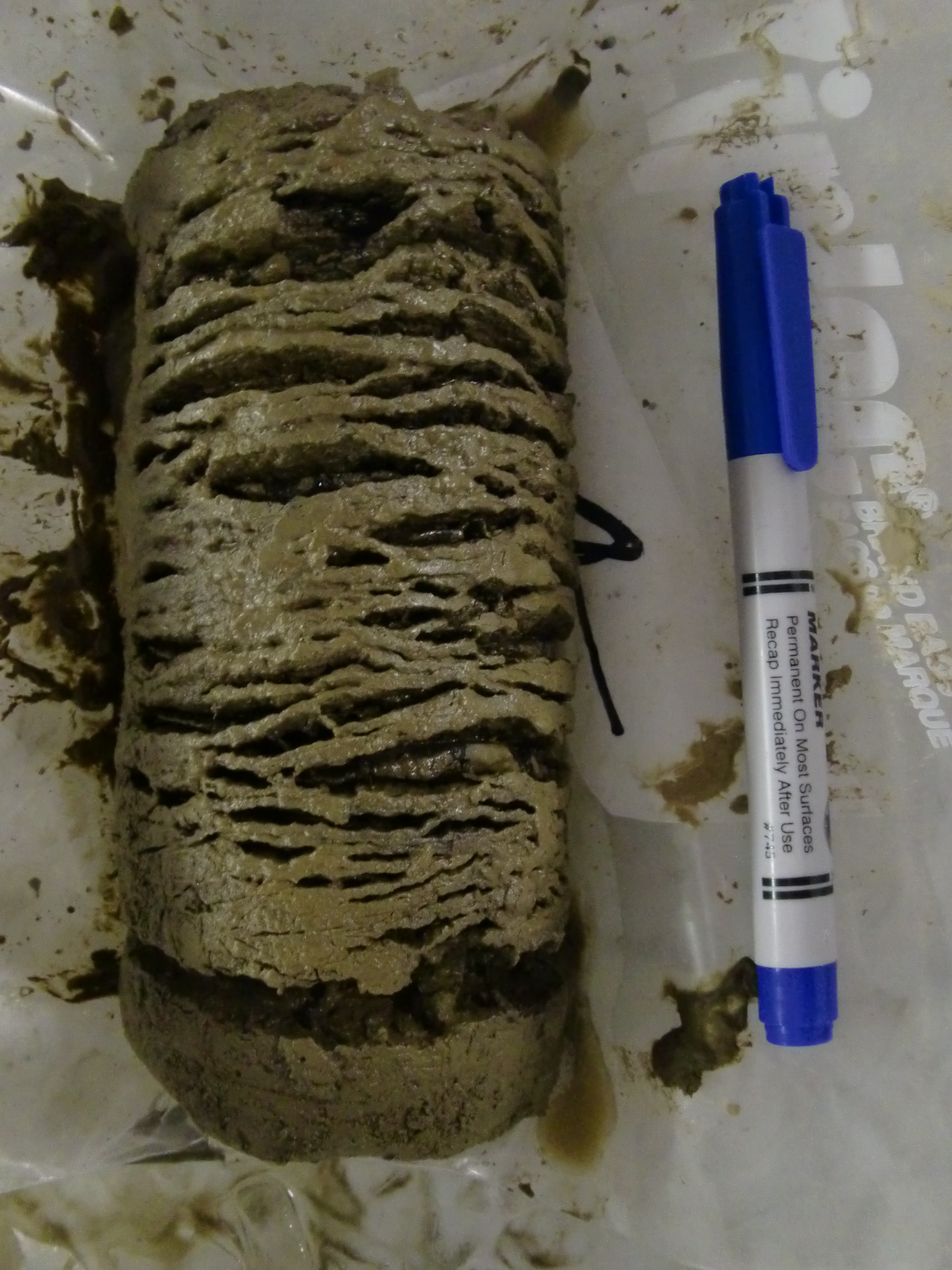 A permafrost soil core after half a day out of the freezer with much of the ice melted. Alexander Dawson School, Lafayette, Colorado.