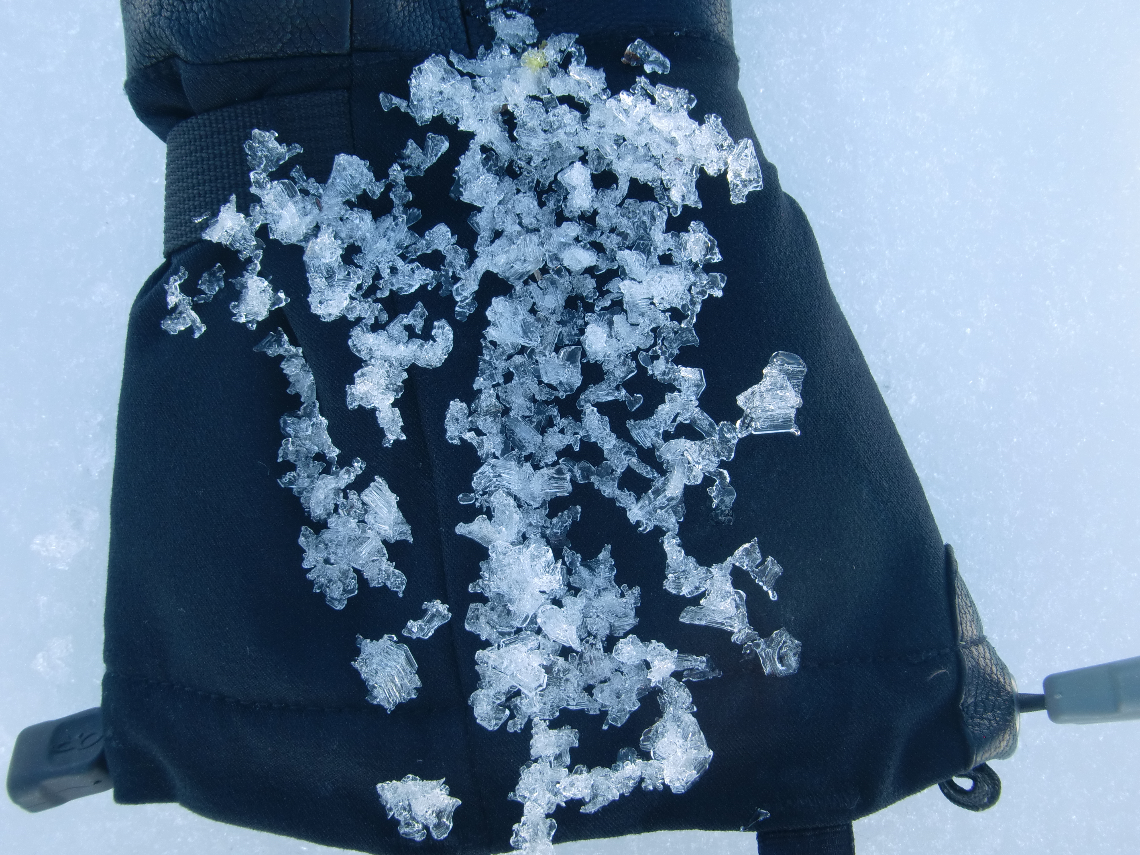 Depth hoar crystals on glove. In the Kuparuk River Valley near Toolik Field Station, Alaska.