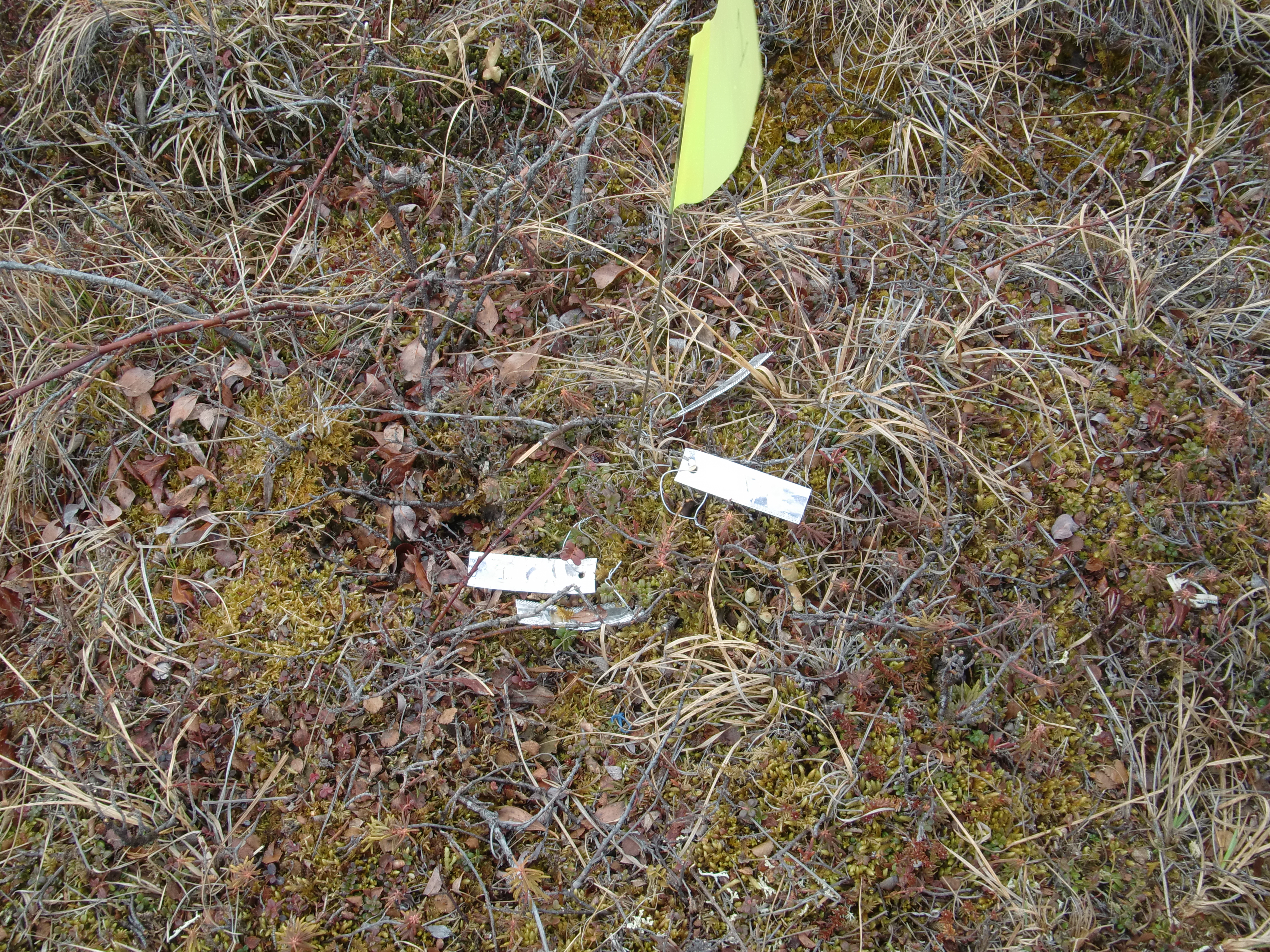 One site with two plants of each type tagged. At the old air strip near Toolik Field Station, Alaska.