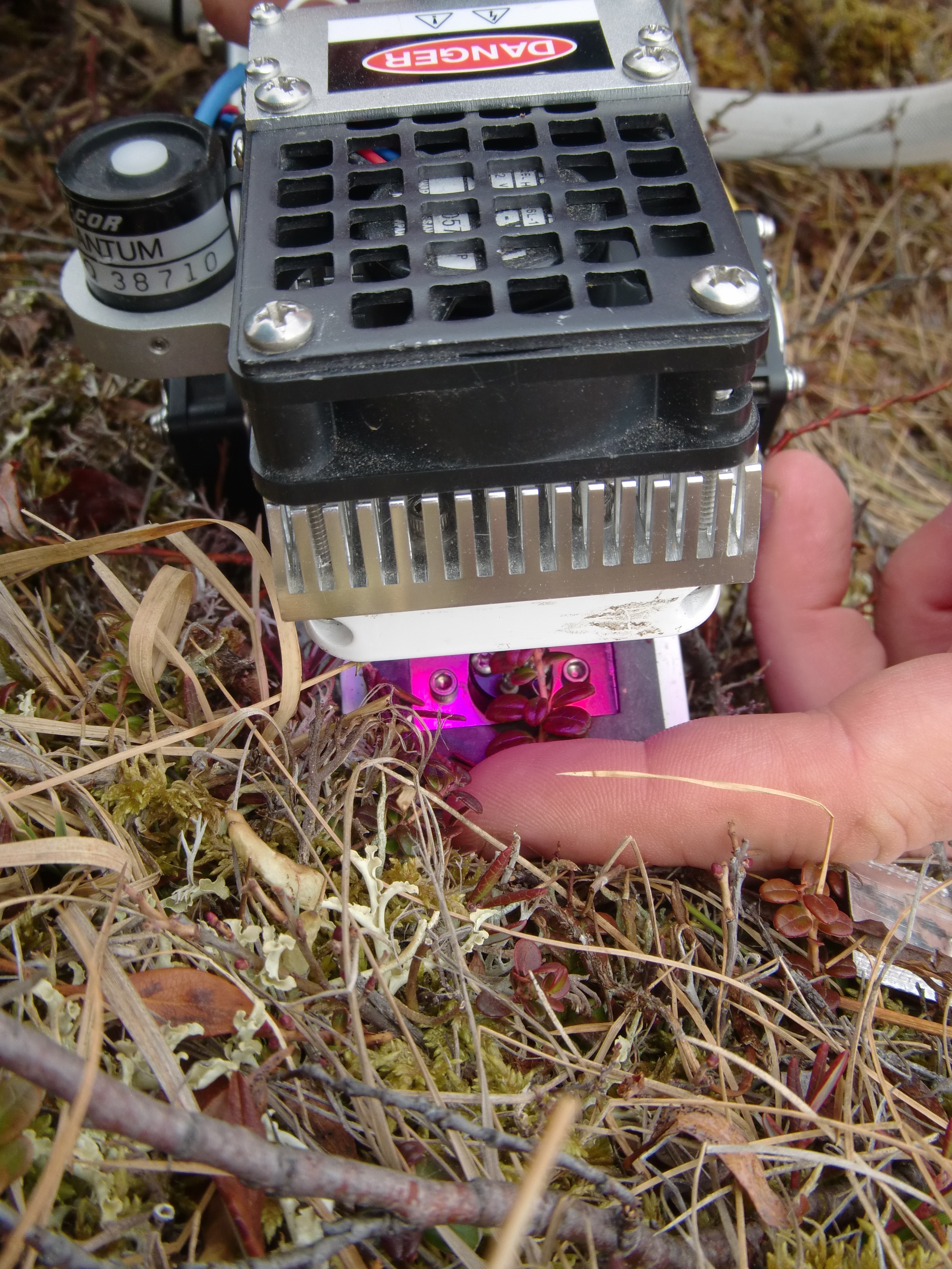 Greg Starr puts a leaf into the chamber. At the old air strip near Toolik Field Station, Alaska.