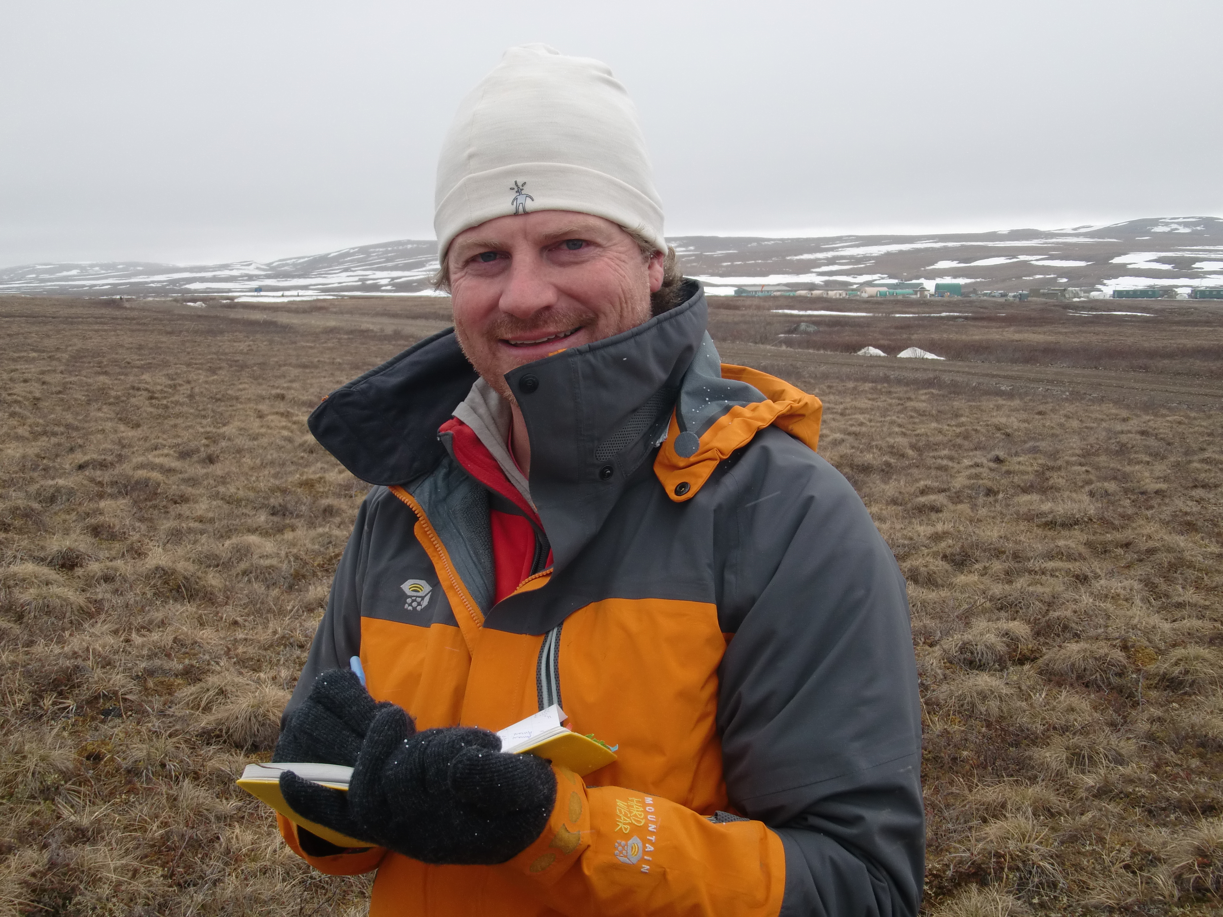 Dr. Greg Starr taking data in his field book. At the old air strip near Toolik Field Station, Alaska.