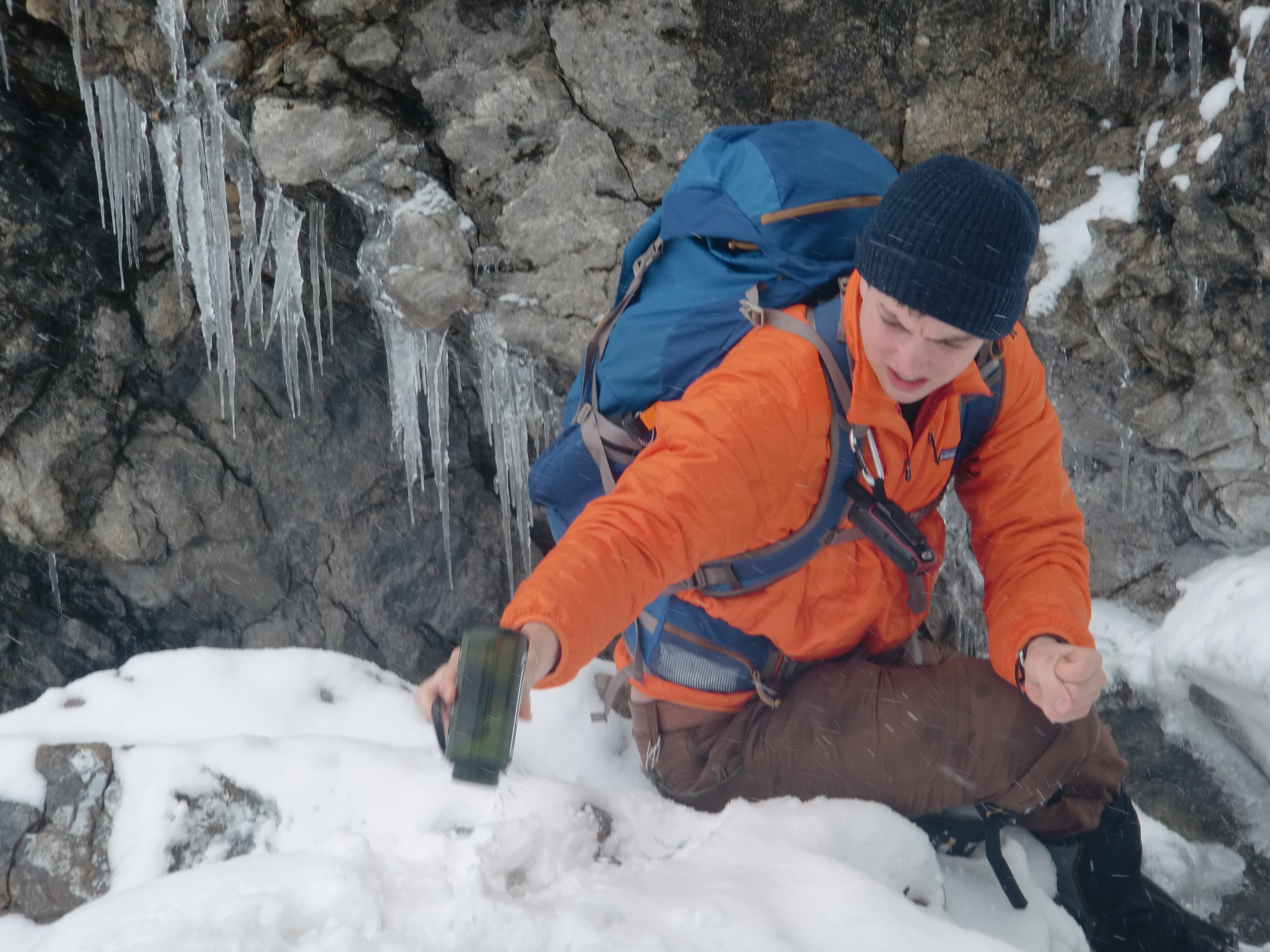 Jason rinses before collecting a water sample. Atigun Gulch, Alaska.