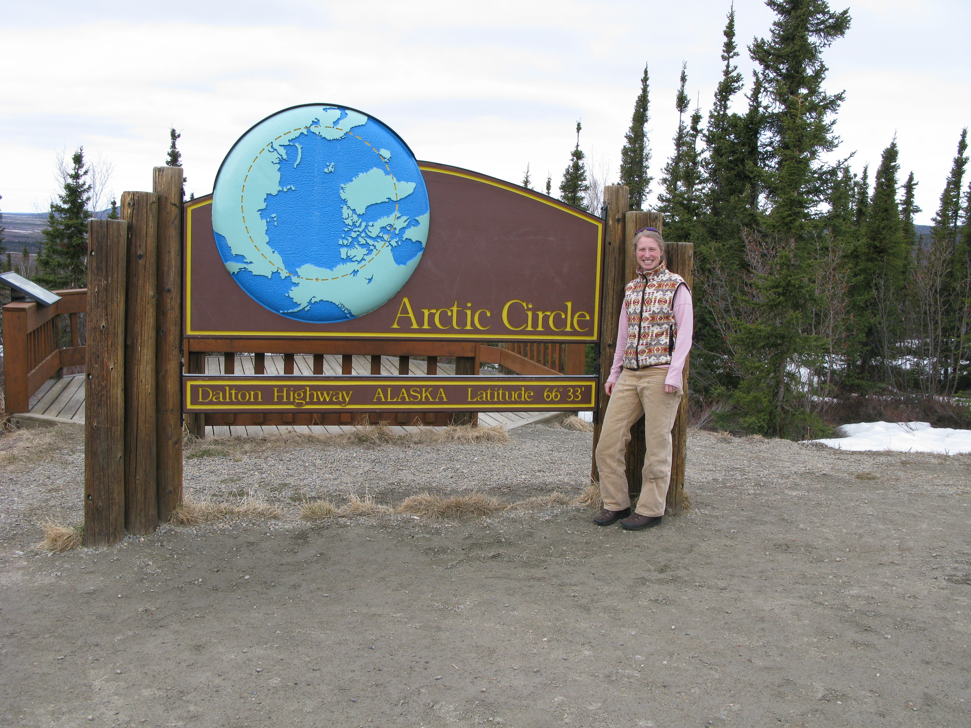 Melissa Barker at the Arctic Circle. Dalton Highway, Alaska.