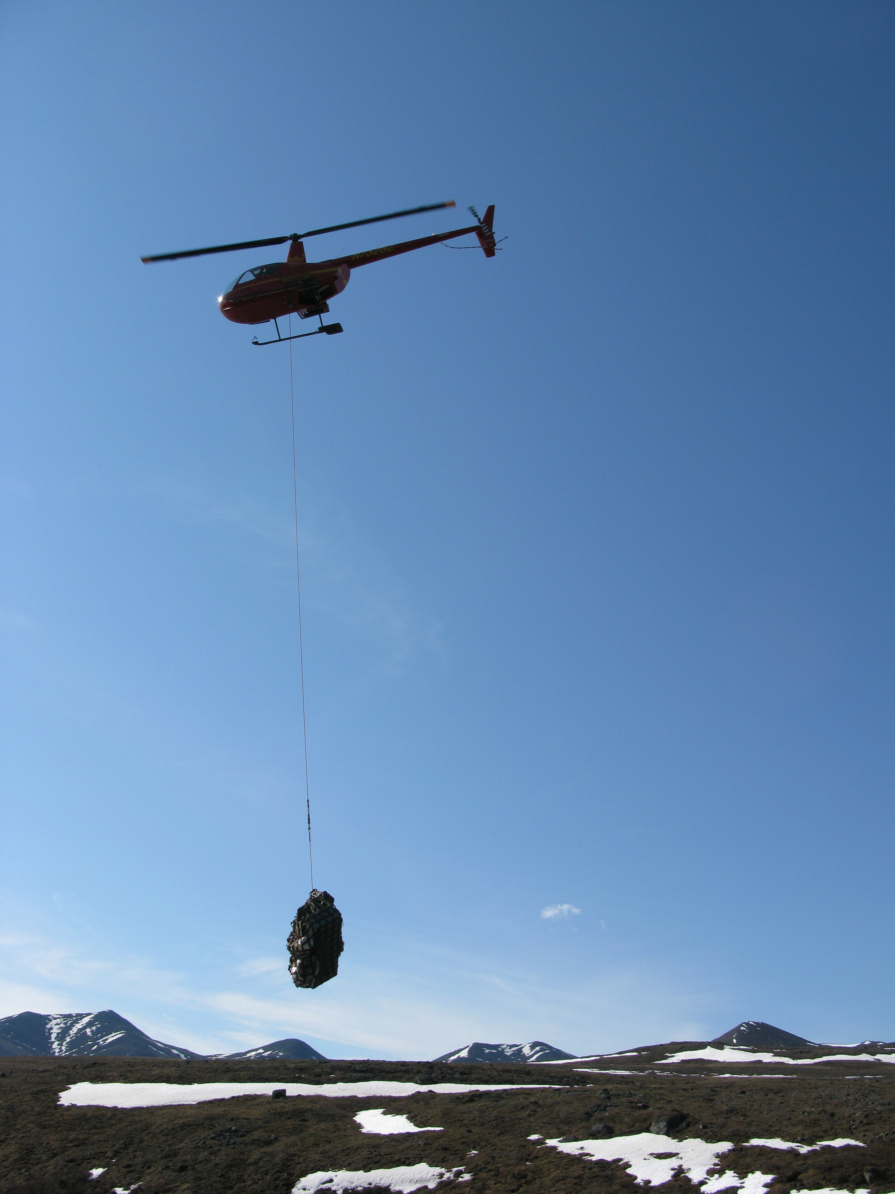The helicopter slinging gear back to Toolik. In the Kuparuk River Valley near Toolik Field Station, Alaska.
