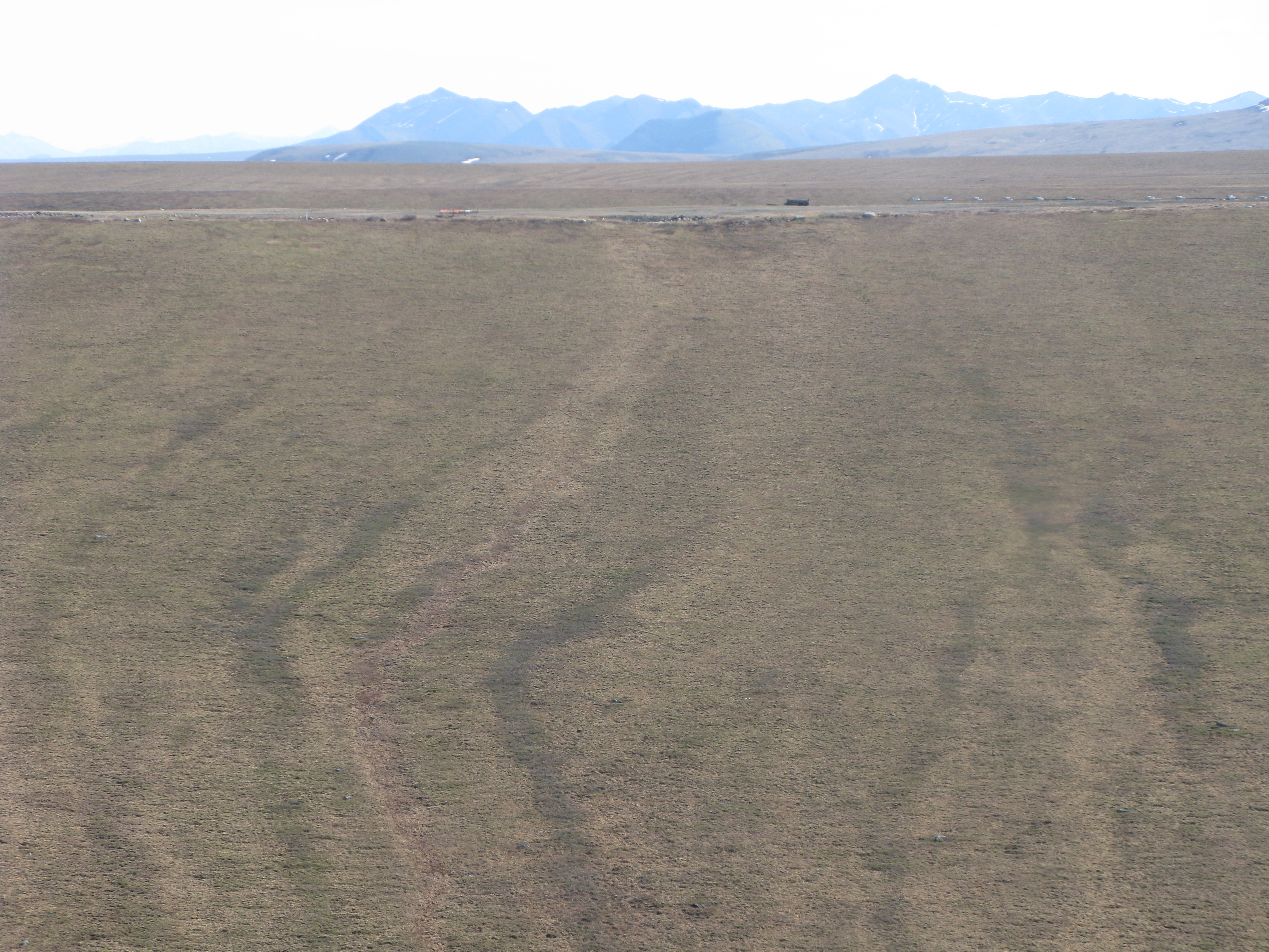 The dark green areas are water tracks flowing towards the Kuparuk River. As seen from a helicopter. In the Kuparuk River Valley near Toolik Field Station, Alaska.