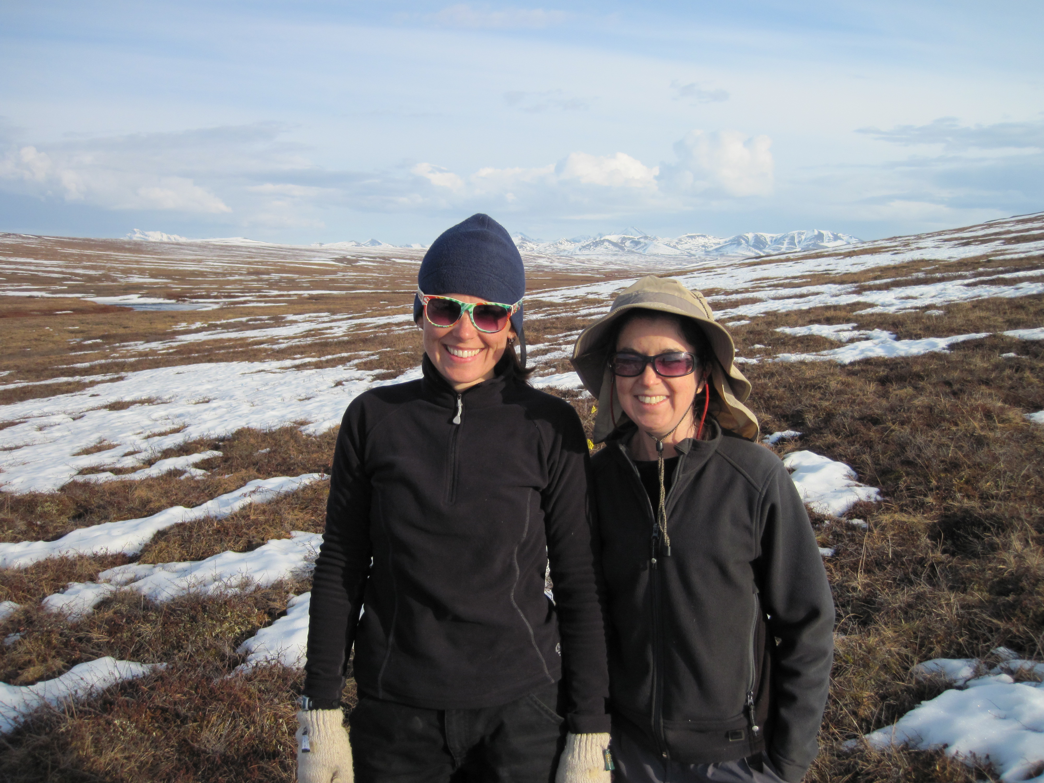 Tamara Harms (on left) and Sarah Godsey in front of the Brooks Range. In the Kuparuk River Valley near Toolik Field Station, Alaska.